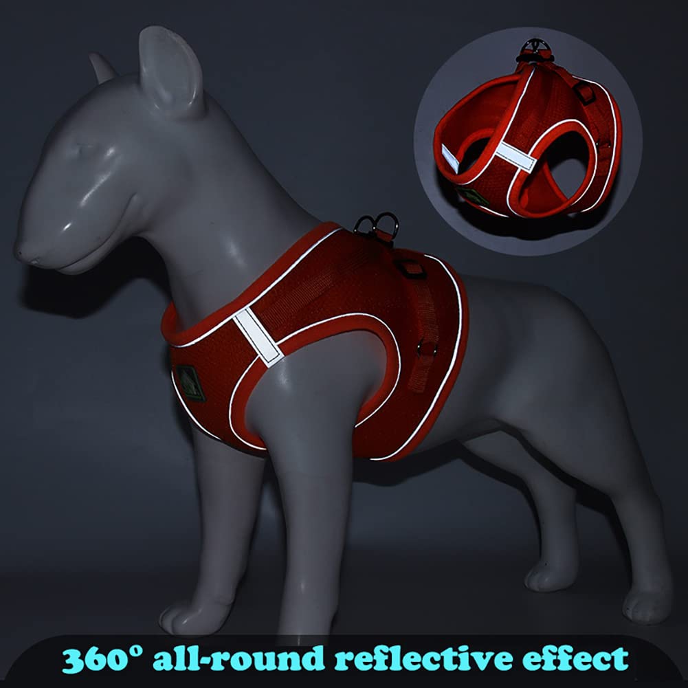 Q: How do I properly care for and clean the harness?A: To maintain the harness, it is recommended to hand wash it with mild soap and water. Avoid machine washing to preserve the fabric and reflective features. Allow it to air dry completely before the next use.