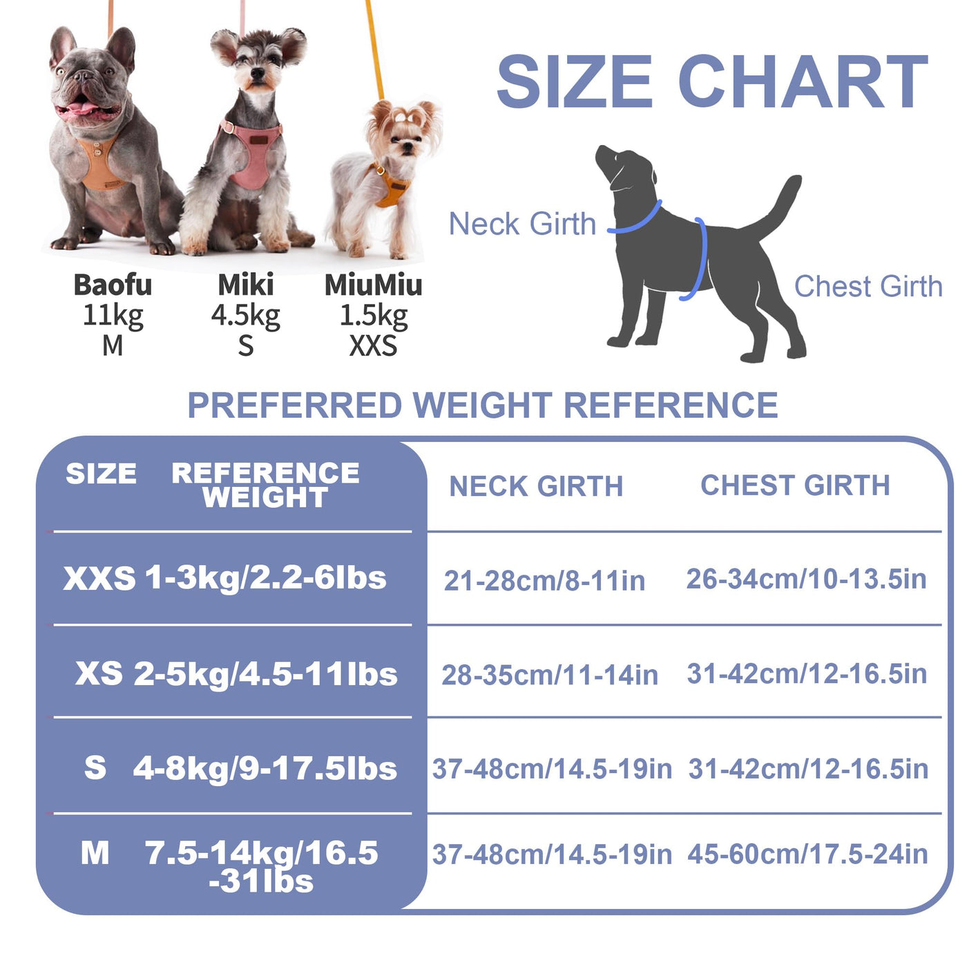 Puppytie Brand Origin: The Belief Of Forces For Change Has Allowed Puppytie To Quickly Become A Pet Fashion Product Brand That Has Rapidly Increased Its Attention Worldwide From The Luxury Pet Product Oem Factories All Over The World.With A Professional And Innovative Design Team And A Powerful And Complete Supply Chain System, It Brings New Fashion Trends To Pets All Over The World Product Series: Puppytie Basic Harness For Small And Medium-Sized Dogs Multiple Colors To Choose Red,Red-Camellia,Navy,Black,Orange,Light Blue Caramel,Red Hawthorn,Taro Purple,Yellow,Light Purple,Silver Grey,Khaki Camel,Denim Smoke Grey Size Suitable Weight Size Chart Xxs 2.2Lb-6Lb Xs 4.5Lb-11Lb S 9Lb-17.5Lb M 16.5Lb-35Lb Warm Tips. Please Measure The Size Carefully Before Purchasing This Present For Your Puppy. If You Have Any Questions, Please Click To Contact The Merchant For Consultation.