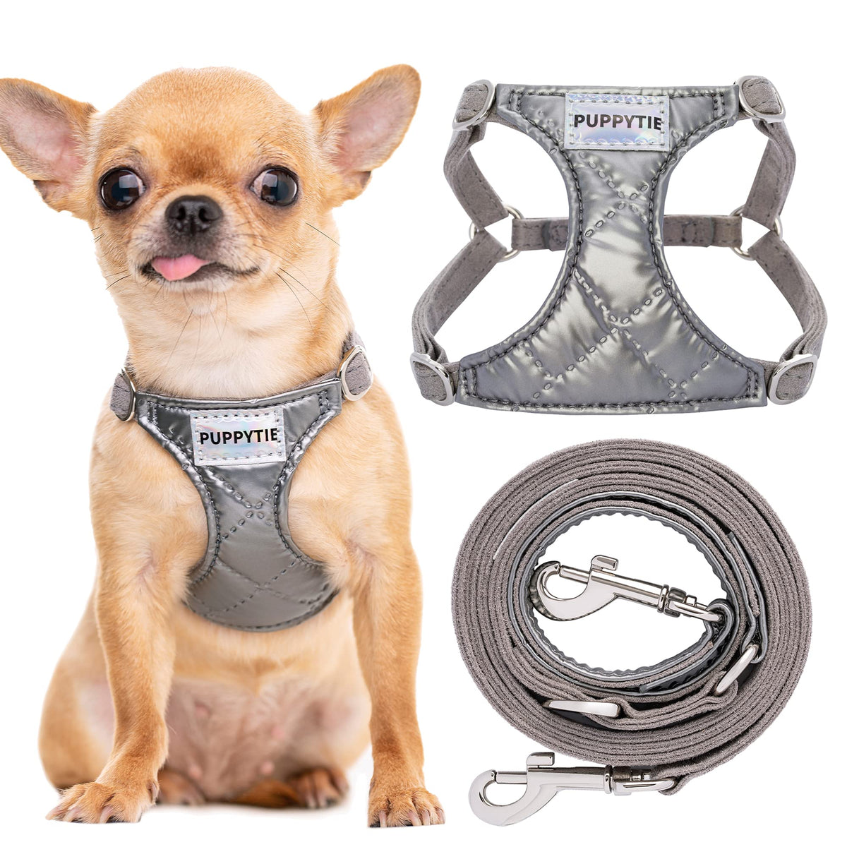 Puppytie No Pull Xs Dog Harness With Multifunction Dog Leash,Soft Adjustable No Choke Escape Proof Pet Harness Vest,Glossy Grey,