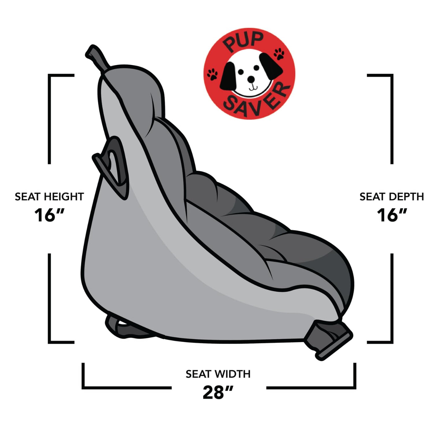 cRASH-TESTED - PupSaver is a rear-facing crash tested dog car safety seat All of our safety seats have been tested to or beyond the canine version of the FMVSS guidelines The rear-facing design makes PupSaver the only crash test-worthy dog car seat on the market Our seat works with your vehicles SRS and seatbelt pretensioner to provide maximum impact protection and Safety Beyond Restraint cOMFORTABLE - The soft ballistic nylon and poly-filled seat bottom makes a car seat that is both durable and comfortable We only make the best for your pup SAFE - Heavy-duty metal j-hooks for lower LATcH (child safety seat) anchors in the back seat New all-metal tether attachment system provides security at the base of the seat Five total seatbelt-grade plastic clips (reversible for use behind driver and passenger seats) lock PupSaver in place and integrate with seatbelt pretensioner in case of an accident to pull PupSaver safely over your dog VERSATILE - can be used in the front or back seat can double as a pet bed while traveling PupSaver Seats are cOMPLETELY constructed of ballistic nylon There are no hard foam pieces (like a booster seat) so the PupSaver is somewhat flexible *Please measure your vehicleAs seats before purchasing a PupSaver we will provide a prepaid label for return however the cost of the return label will be taken from the refund We also want to specify that there will be a 50% restocking fee for products that are returned outside of the original shape of the product