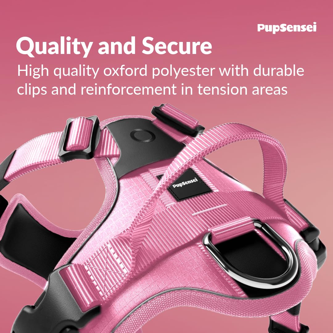 Experience The Ultimate Blend Of Comfort, Control, And Durability With The Pupsensei No-Pull Dog Harness. This Thoughtfully Crafted Harness Is Designed For Daily Adventures With Your Furry Friend, Offering Unparalleled Convenience And Support. With A Robust No-Pull Design, It Features A Front Anti-Pull Loop That Helps Curb Pulling Behavior, Making It A Great Choice For Training Both Puppies And Adult Dogs. The Pupsensei Harness Is Made From Tear-Resistant Oxford Polyester And Lined With Soft, Odor-Resistant Neoprene To Keep Your Dog Comfortable All Day Long. Its Dual Attachment Points (Front And Back) Offer Versatile Control Options, While A Rear Handle Provides An Extra Level Of Guidance, Ideal For Helping Your Dog Over Obstacles Or Maintaining Control In Busy Settings. With Quick-Release Side Clips, Getting This Harness On And Off Is A Breeze, Even On Busy Days. Built For All Weather Conditions, Its Closed-Cell, Weatherproof Construction Repels Water, And Reflective Strips Enhance Visibility During Low-Light Walks, Ensuring Safety In Any Environment. Plus, Stainless Steel Hardware Provides Rust-Free Durability, So This Harness Can Handle Everything From Daily Walks To Rugged Outdoor Adventures. Upgrade Your Dog'S Walking Experience With The Pupsensei No-Pull Dog Harness - A Durable, Functional, And Stylish Harness Thats Designed To Meet The Demands Of Everyday Life.