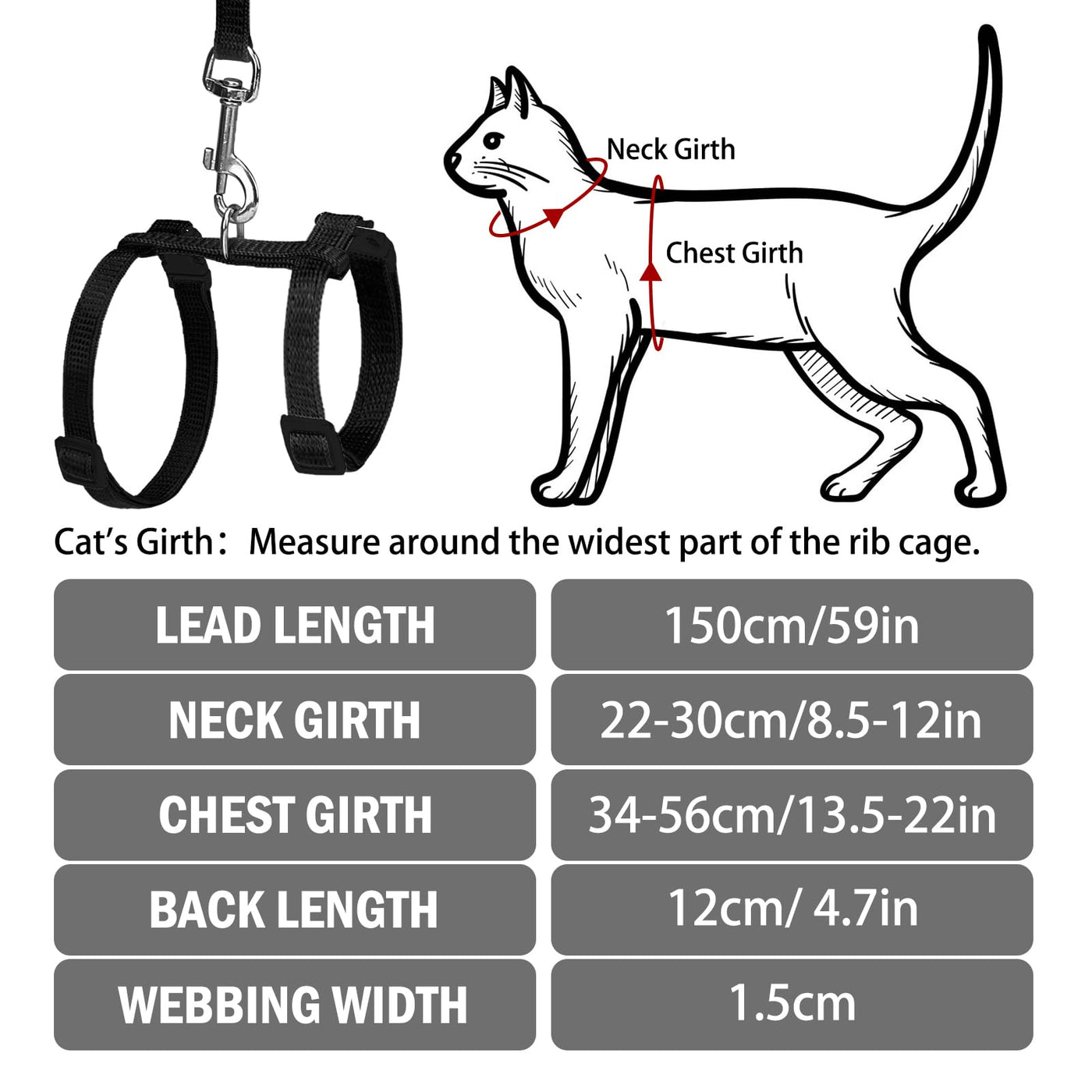 Pupteck Adjustable Cat Harness And Leash Set Escape Proof Kitten Strap Collar For Walking Travel, Black, M