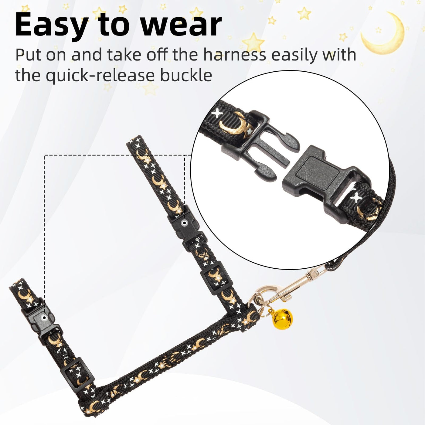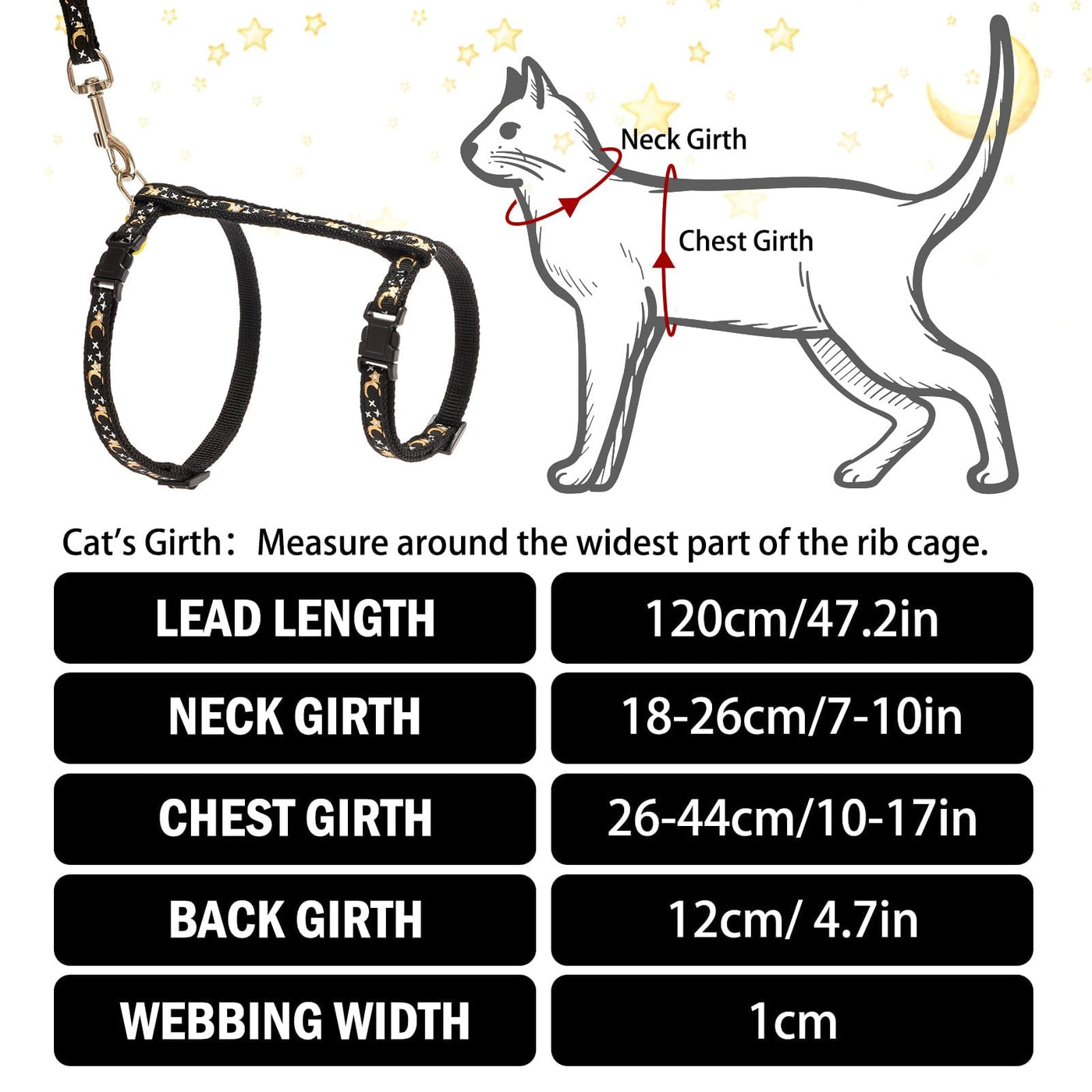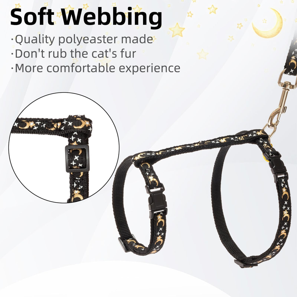 Pupteck Adjustable Cat Harness And Leash Set Escape Proof Kitten Strap Collar For Walking Travel, Moon&Star