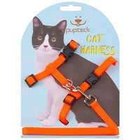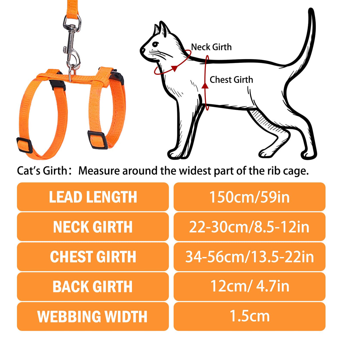 Pupteck Adjustable Cat Harness And Leash Set Escape Proof Kitten Strap Collar For Walking Travel, Orange, M