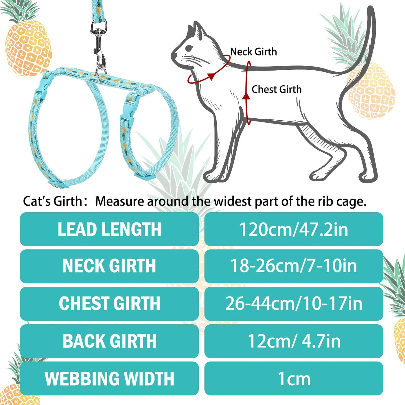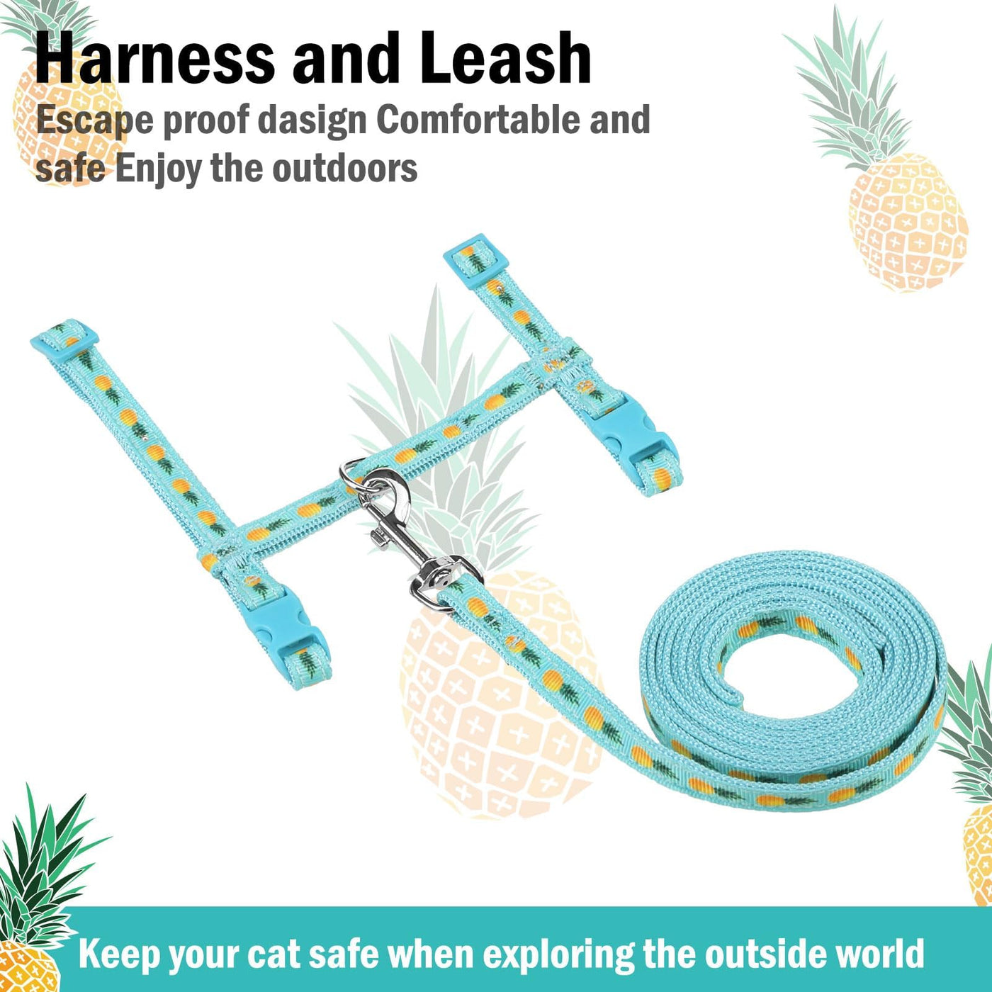 Pupteck Adjustable Cat Harness And Leash Set Escape Proof Kitten Strap Collar For Walking Travel, Pineapple