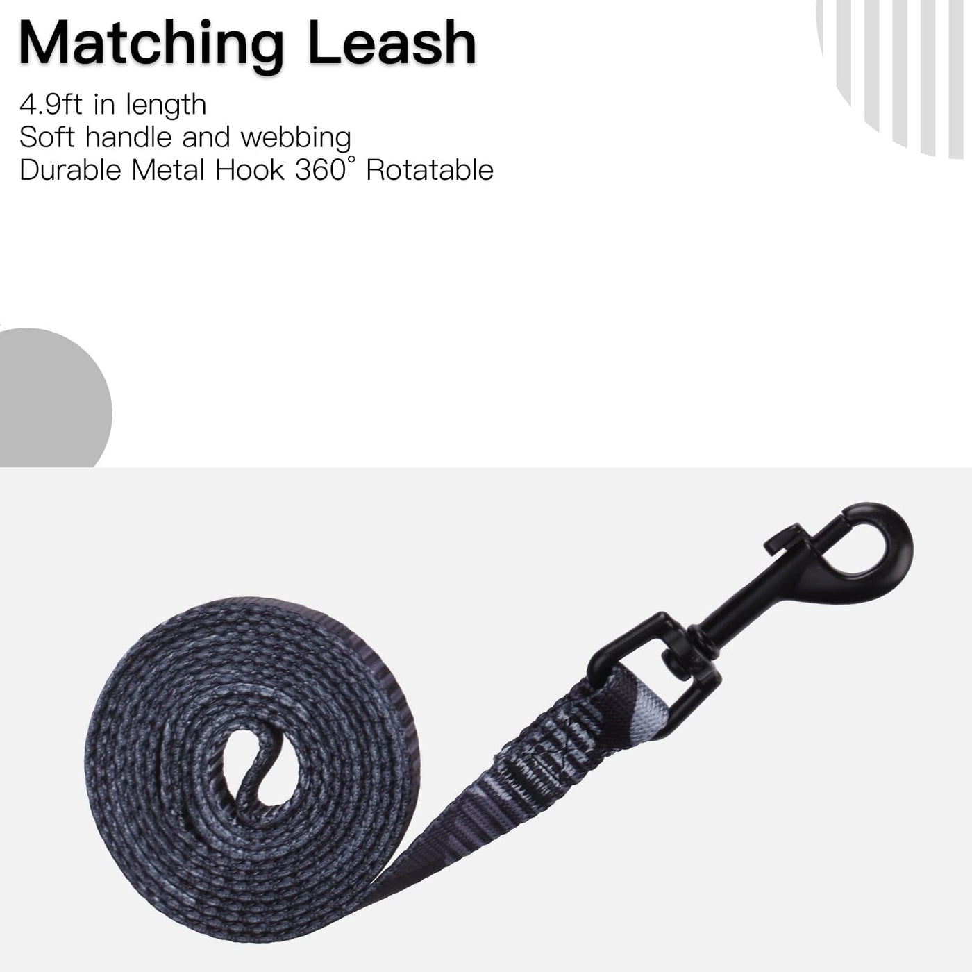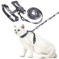 Pupteck Adjustable Cat Harness And Leash Set Escape Proof Kitten Strap Collar For Walking Travel, Printed Dark Grey