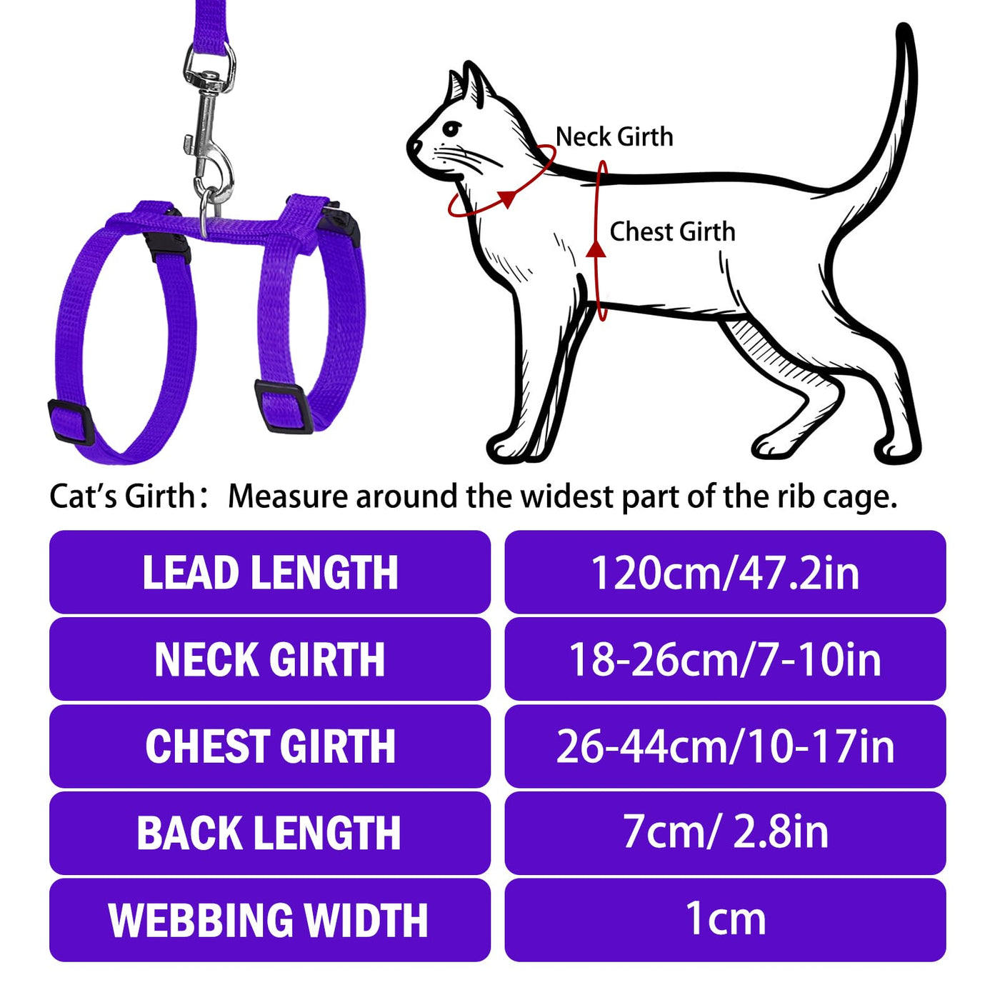 Pupteck Adjustable Cat Harness And Leash Set Escape Proof Kitten Strap Collar For Walking Travel, Purple