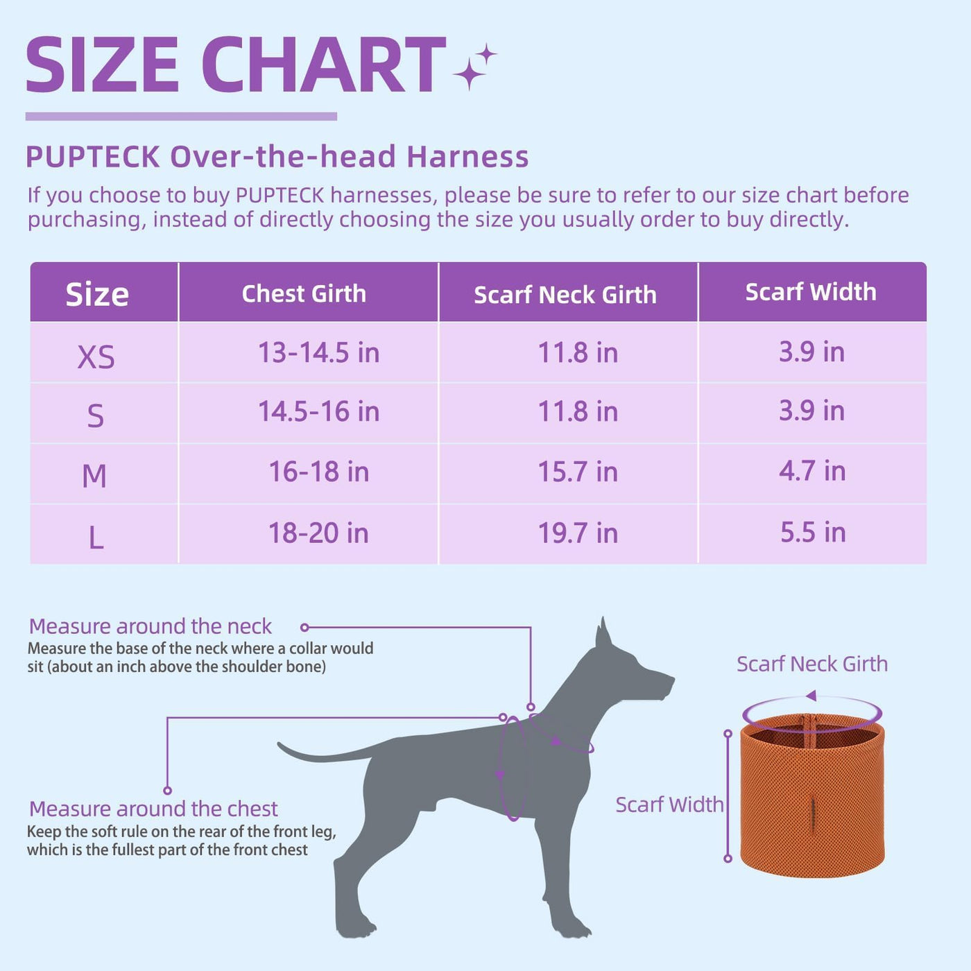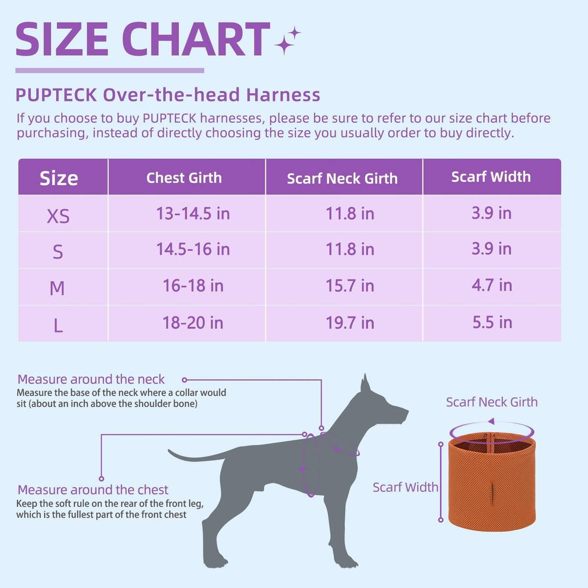 Q: What sizes are available for the PUPTECK Adjustable Dog Harness?A: The PUPTECK Adjustable Dog Harness is available in various sizes, including XXS, XS, S, M, L, and XL. Always measure your dog's chest girth before selecting a size to ensure the perfect fit.