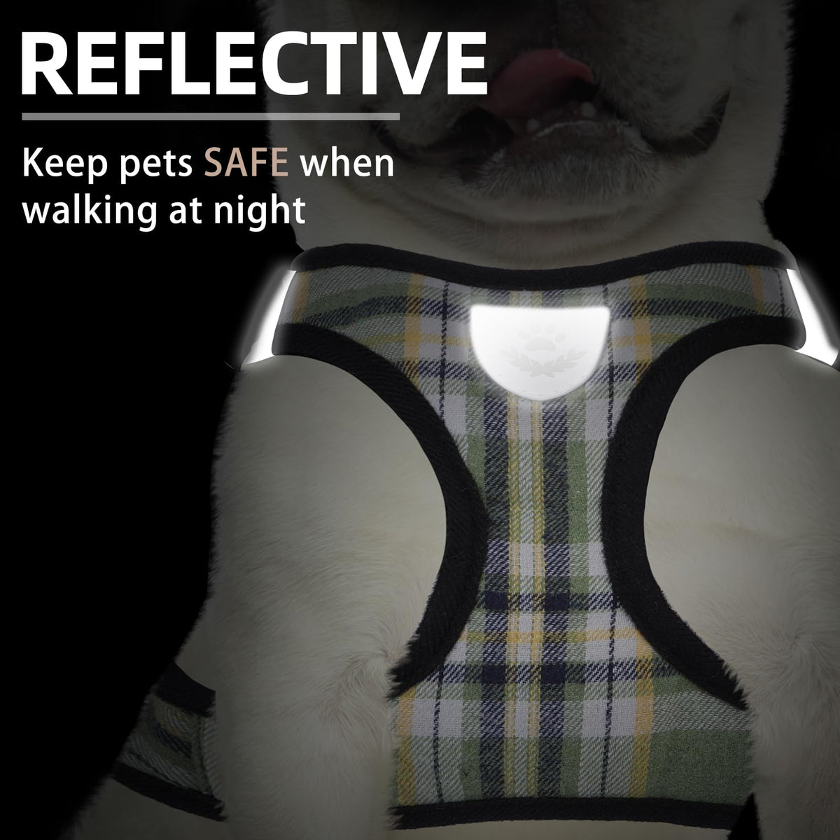 [REFLECTIVE PLAID PATTERN] - This Harness has two sides of reflective straps and the middle logo also is reflective so if you walk with your dog at night then both of you will be safer! In addition the classic plaid pattern is designed by our internal brand team so it's very different from other normal harnesses. This plaid pattern looks both classic and stylish and is never out of date.