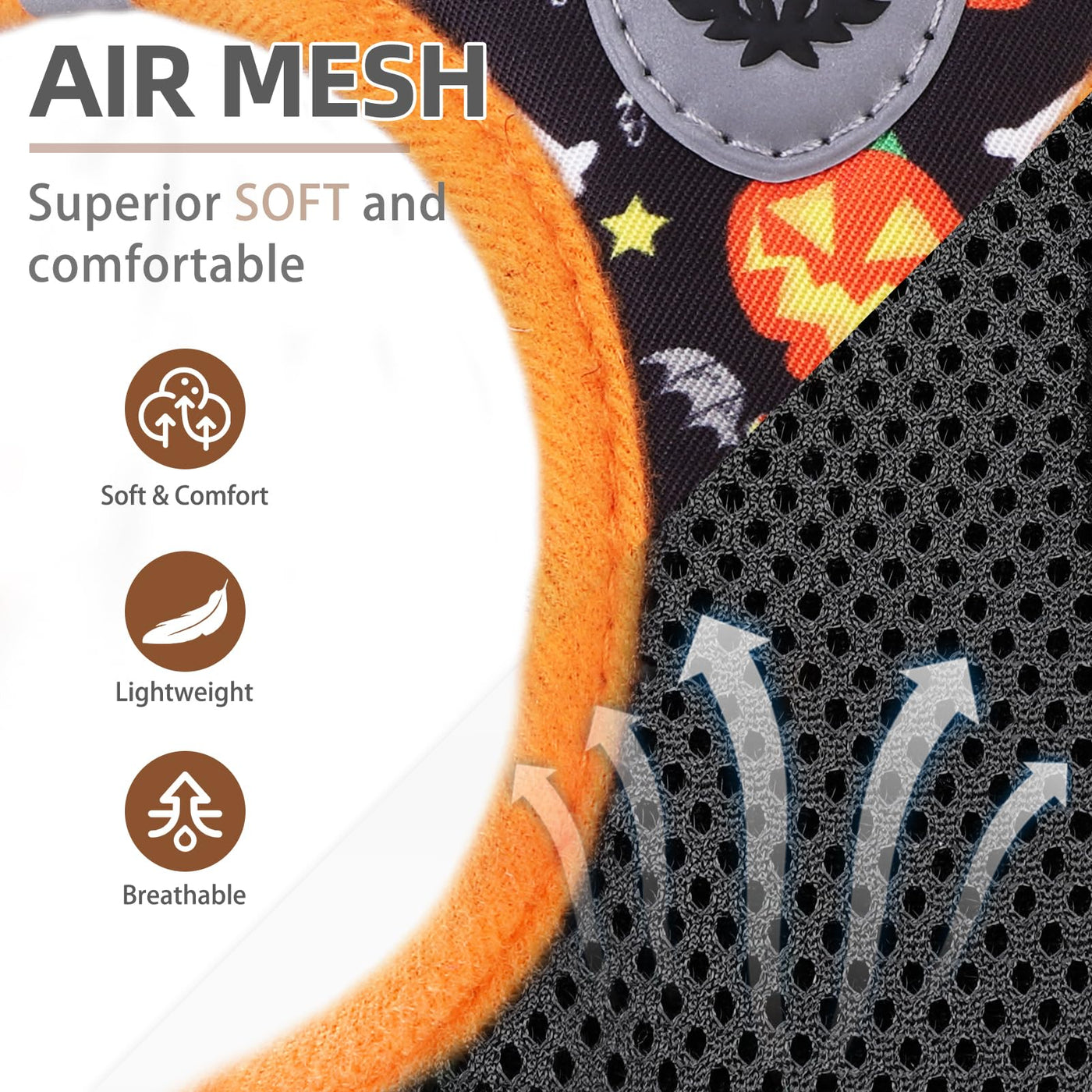 Pupteck Adjustable Dog Harness Collar And Leash Set Step In No Pull Pet Harness For Small Medium Dogs Puppy And Cats Outdoor Walking Running, Soft Mesh Padded Reflective Vest Harnesses, Halloween, M