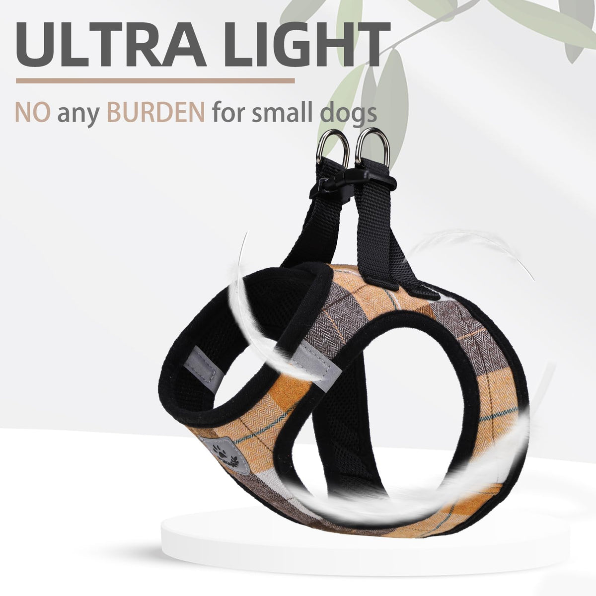 [REFLECTIVE PLAID PATTERN] - This Harness has two sides of reflective straps and the middle logo also is reflective so if you walk with your dog at night then both of you will be safer! In addition the classic plaid pattern is designed by our internal brand team so it's very different from other normal harnesses. This plaid pattern looks both classic and stylish and is never out of date.