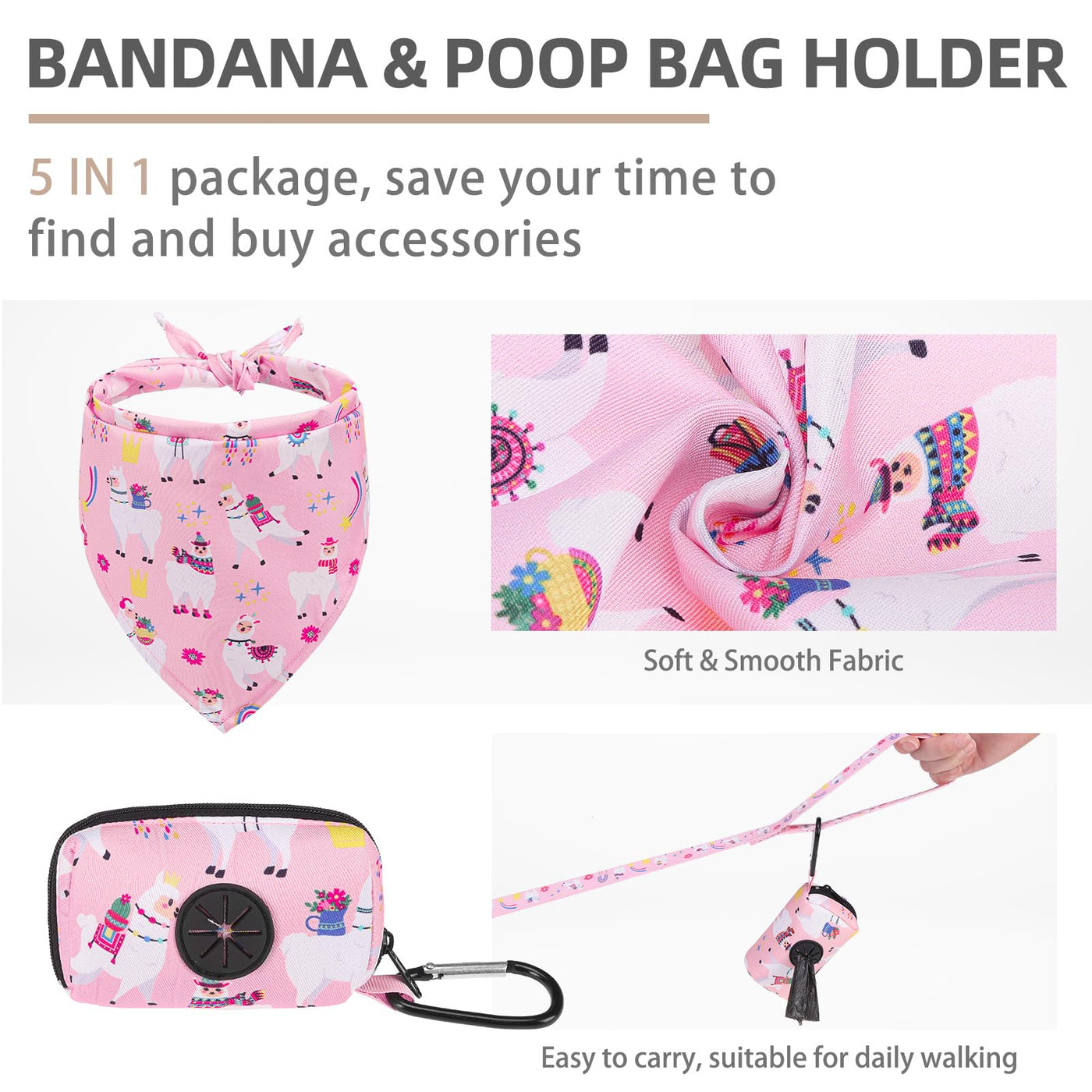 [DOG HARNESS COLLAR & LEASH] - The package includes three items a walking harness a collar and a 4.9ft matching leash. The collar is with bell the leash is equipped with a 360-degree rotation metal hook and the harness is adopted with a quick-release buckle and double D-rings which are very heavy-duty. You don't need to spend extra time looking through other accessories but you get all of these items at the same time with less money! So this is a very cost-effective set.