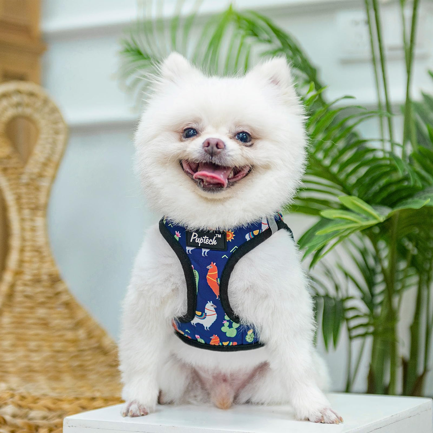 Pupteck Adjustable Dog Harness Collar And Leash Set, Step In No Pull Pet Harness For Small Medium Dogs Puppy Cats Outdoor Walking, Soft Mesh Padded Reflective Vest Harnesses, Navy Blue Alpaca, Xxs