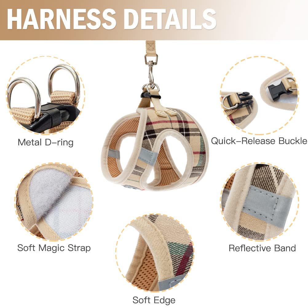 Pupteck Adjustable Pet Harness Collar And Leash Set Step In For Small Dogs Puppy And Cats Outdoor Training And Running, Soft Mesh Padded Reflective Vest Harness