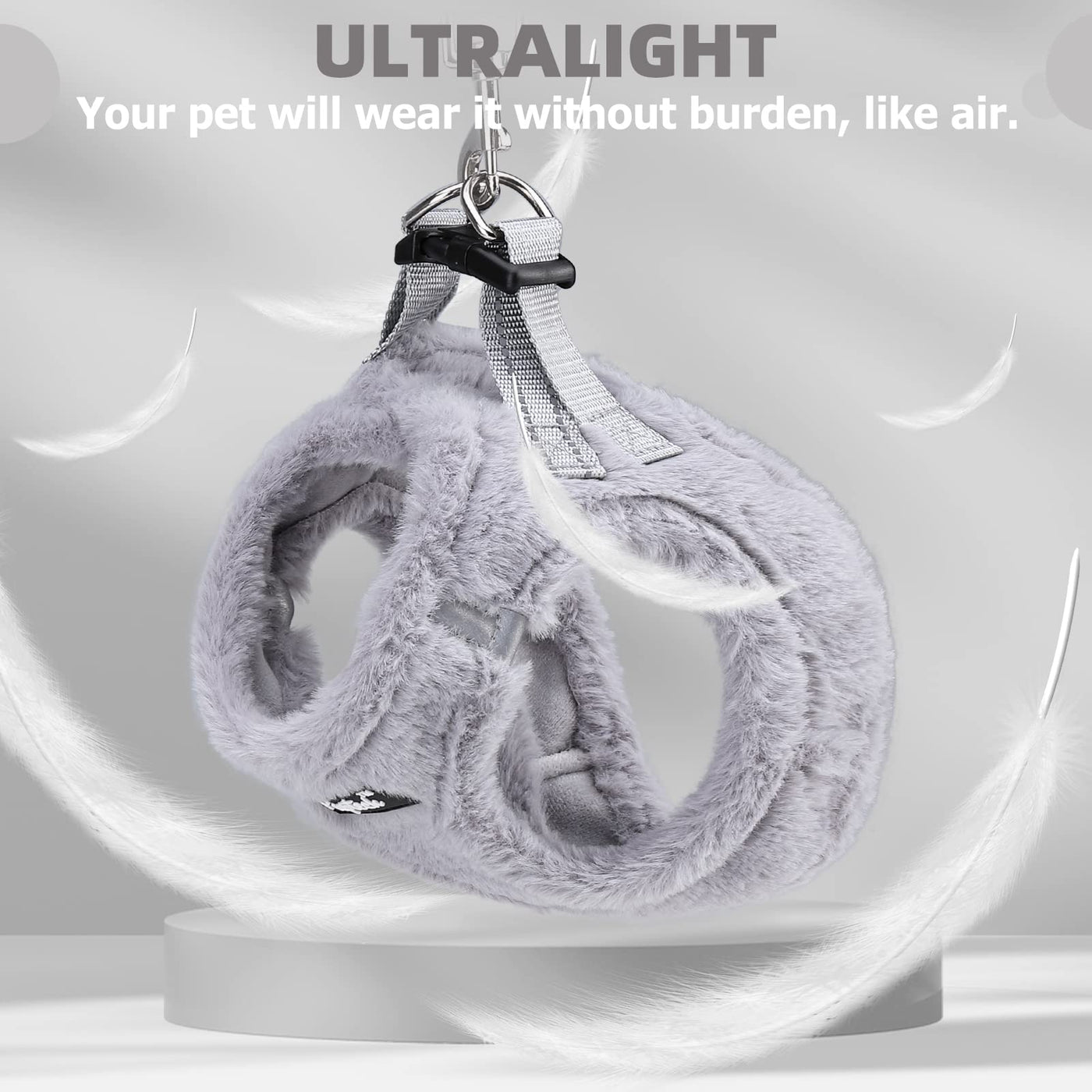WARM: The harness is made of thicker plush which is not only very soft but also keeps the dog warm to a certain extent. It is suitable for walking and playing outdoors in autumn and winter.