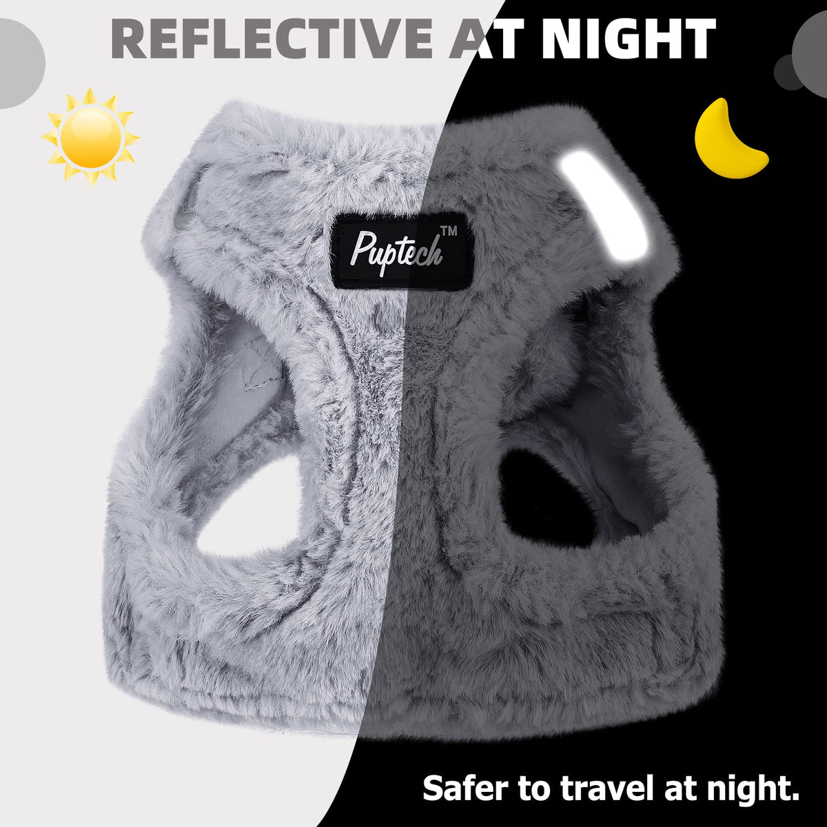 Q: Is the PUPTECK harness suitable for outdoor use in winter?A: Yes, the PUPTECK harness is designed with thicker plush material that not only provides comfort but also keeps your dog warm during outdoor activities in autumn and winter.
