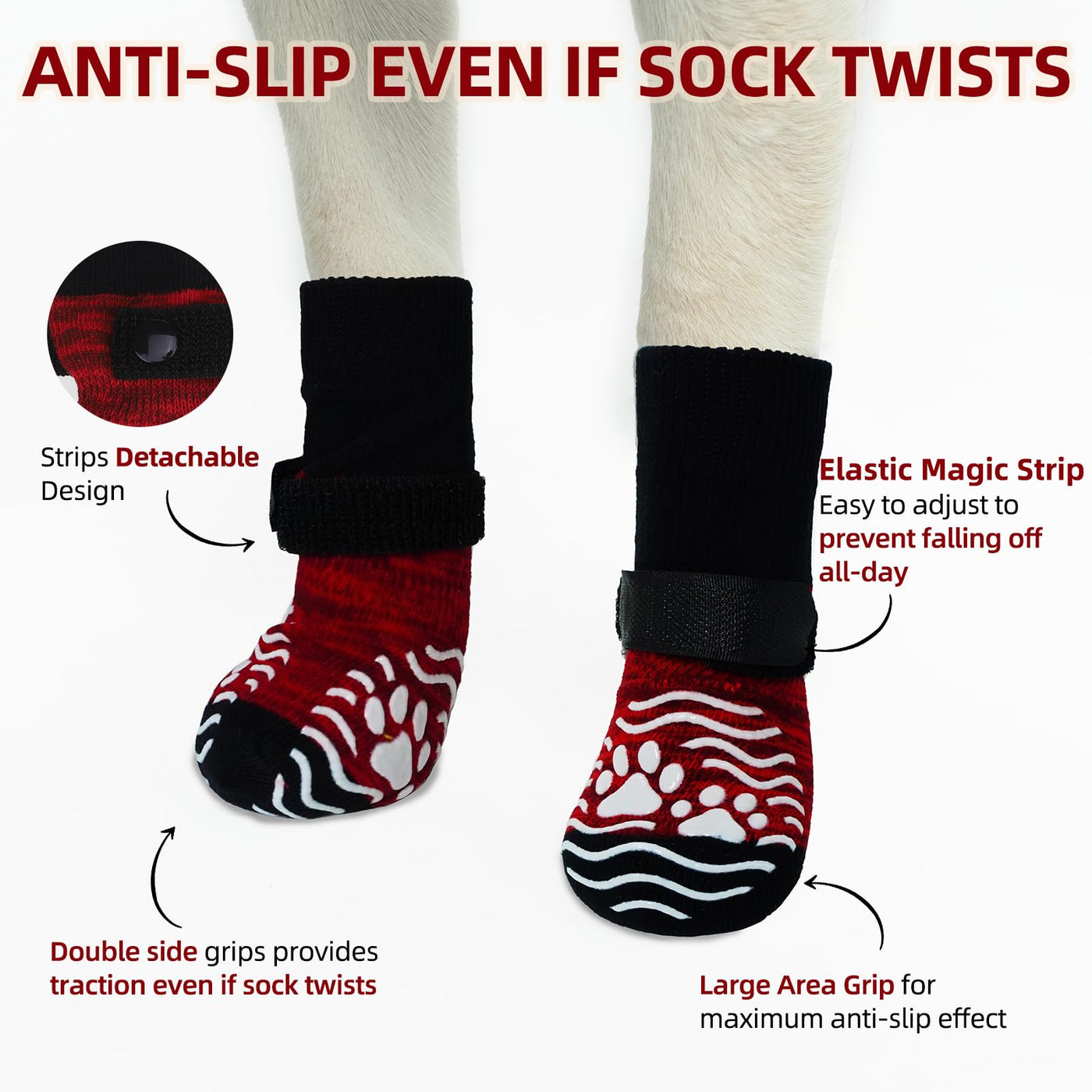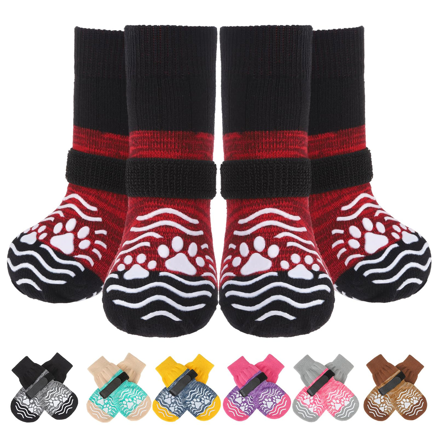 PUPTECK Anti Slip Dog Socks, Shoes with Grippers to Prevent Licking Hardwood Floors Traction, Rubber Boots & Paw Protectors, Sen
