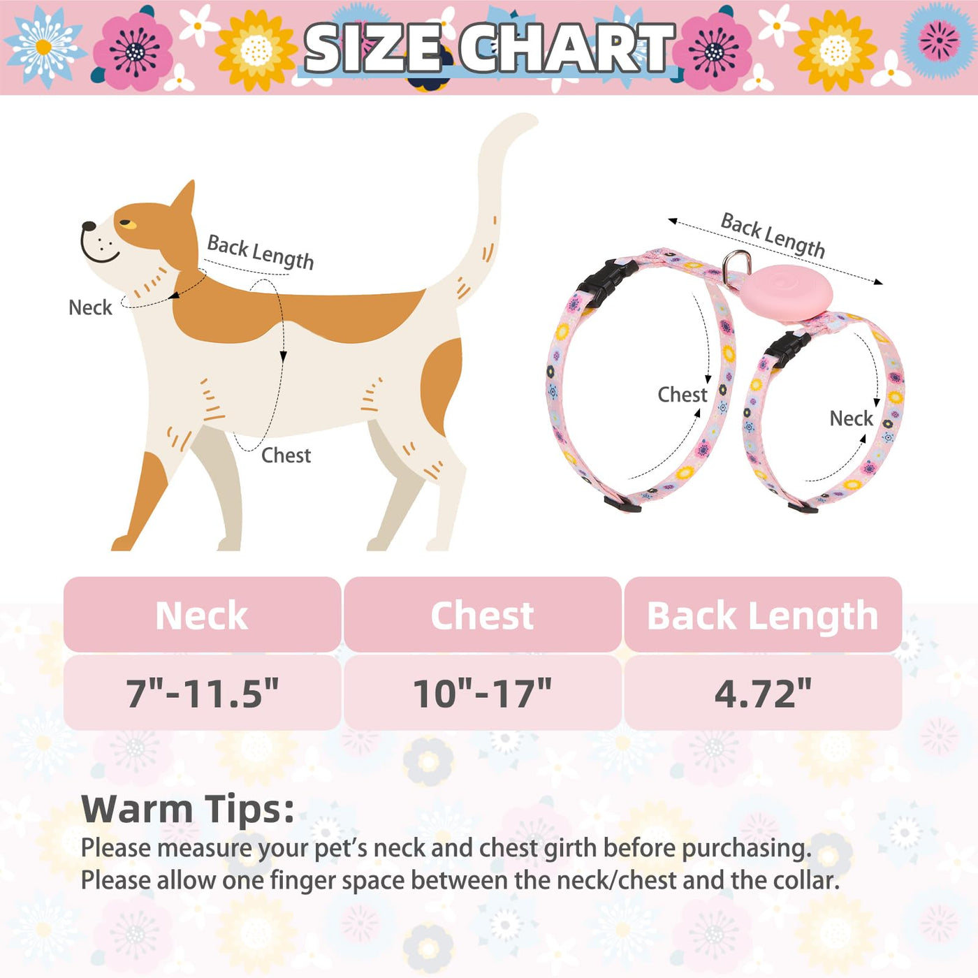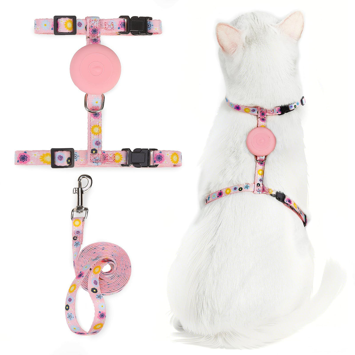 Pupteck Cat Harness And Leash Set Escape Proof, Adjustable Soft Lightweight Kitten Harness With Airtag Holder For Small Medium Cats Walking , Pink Flower