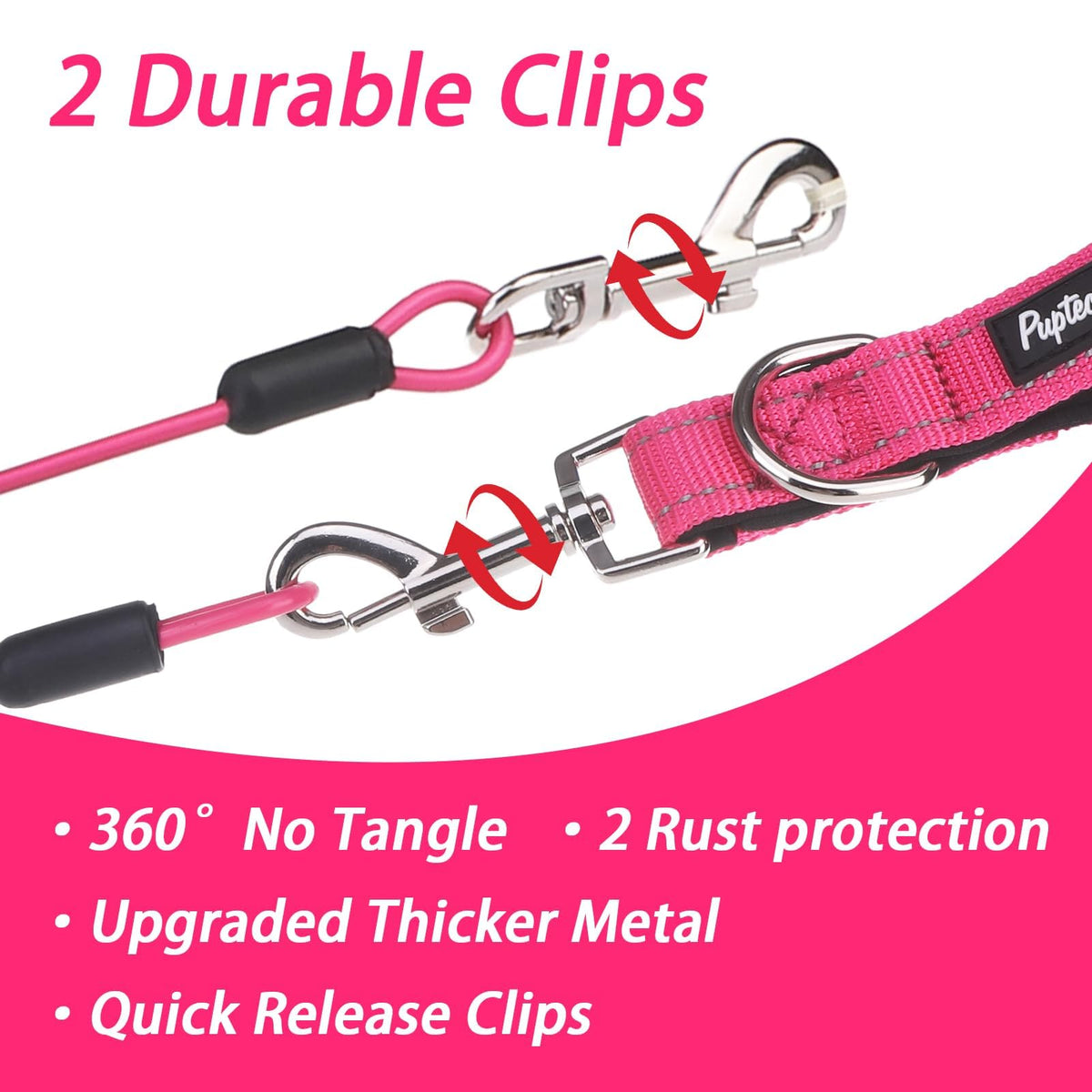 Pupteck Chew-Proof Dog Leash For Small Medium Large Dogs, Heavy Duty Dog Leash With Padded Handle, Steel Cable Lead With Detachable Short Leash For Training Walking