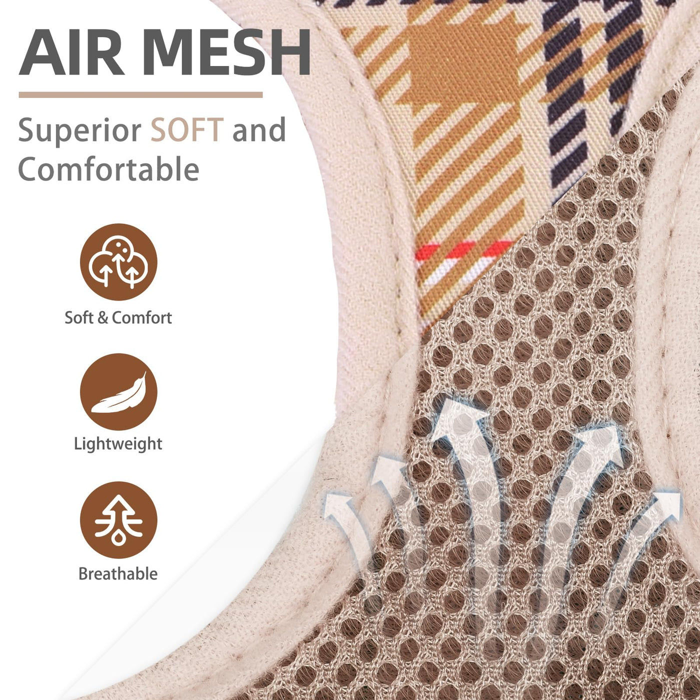 Pupteck Dog Harness And Leash Set For Small Medium Dogs No Pull Step-In Soft Mesh Puppy Cat Vest Harnesses Reflective At Night, Plaid Pattern Beige S