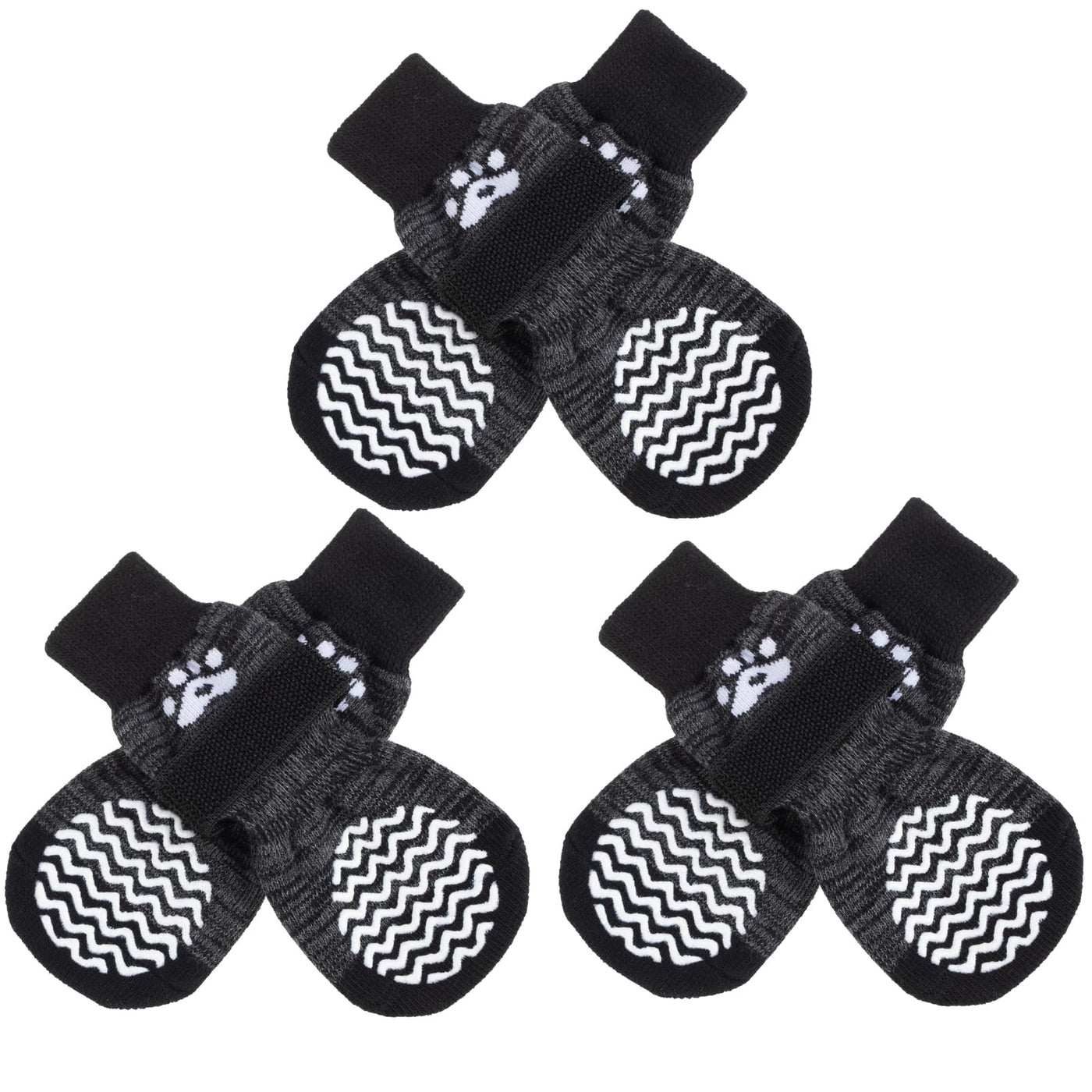 Pupteck Double Side Non-Slip Dog Socks For Hardwood Floors - 3 Pais Anti-Shedding Pet Grip Socks With Adjustable Magic Straps For Small Medium Large Doggies To Prevent Licking