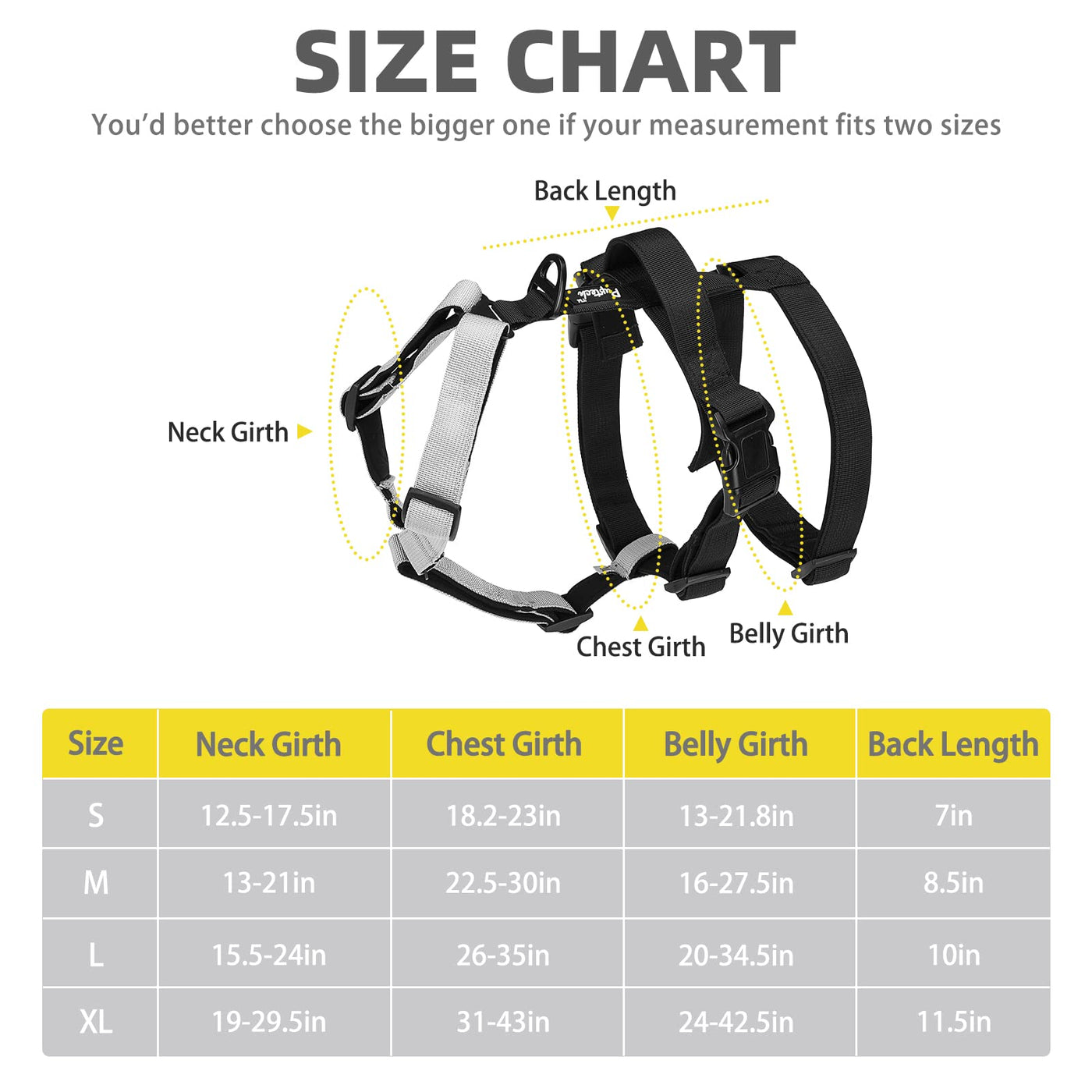 Q: What sizes are available for the PUPTECK Escape Proof Dog Harness?A: The PUPTECK harness comes in multiple sizes, including Small, Medium, Large, and Extra Large. Each size has specific measurements for neck girth, chest girth, belly girth, and back length, allowing you to choose the perfect fit for your dog.