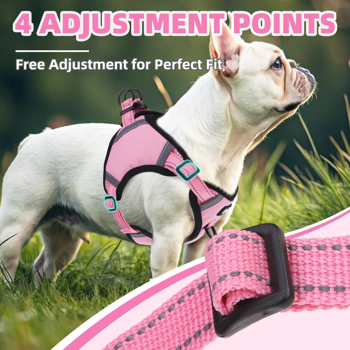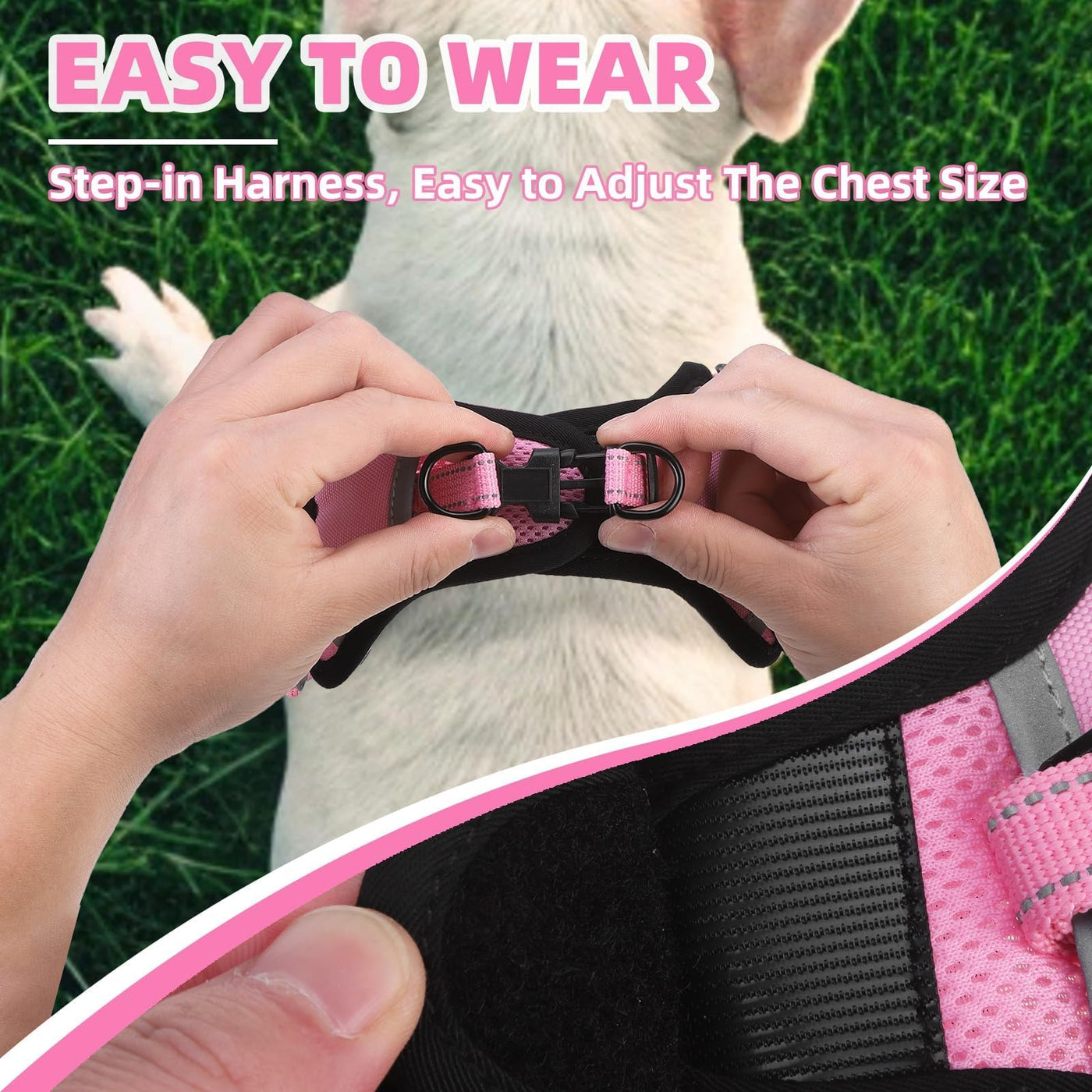 Pupteck No Pull Dog Harness Small Sized Dog, Adjustable Reflective Escape Proof Easy Control, Comfortable Soft Padded Step In Pet Vest Harness, Pink, S