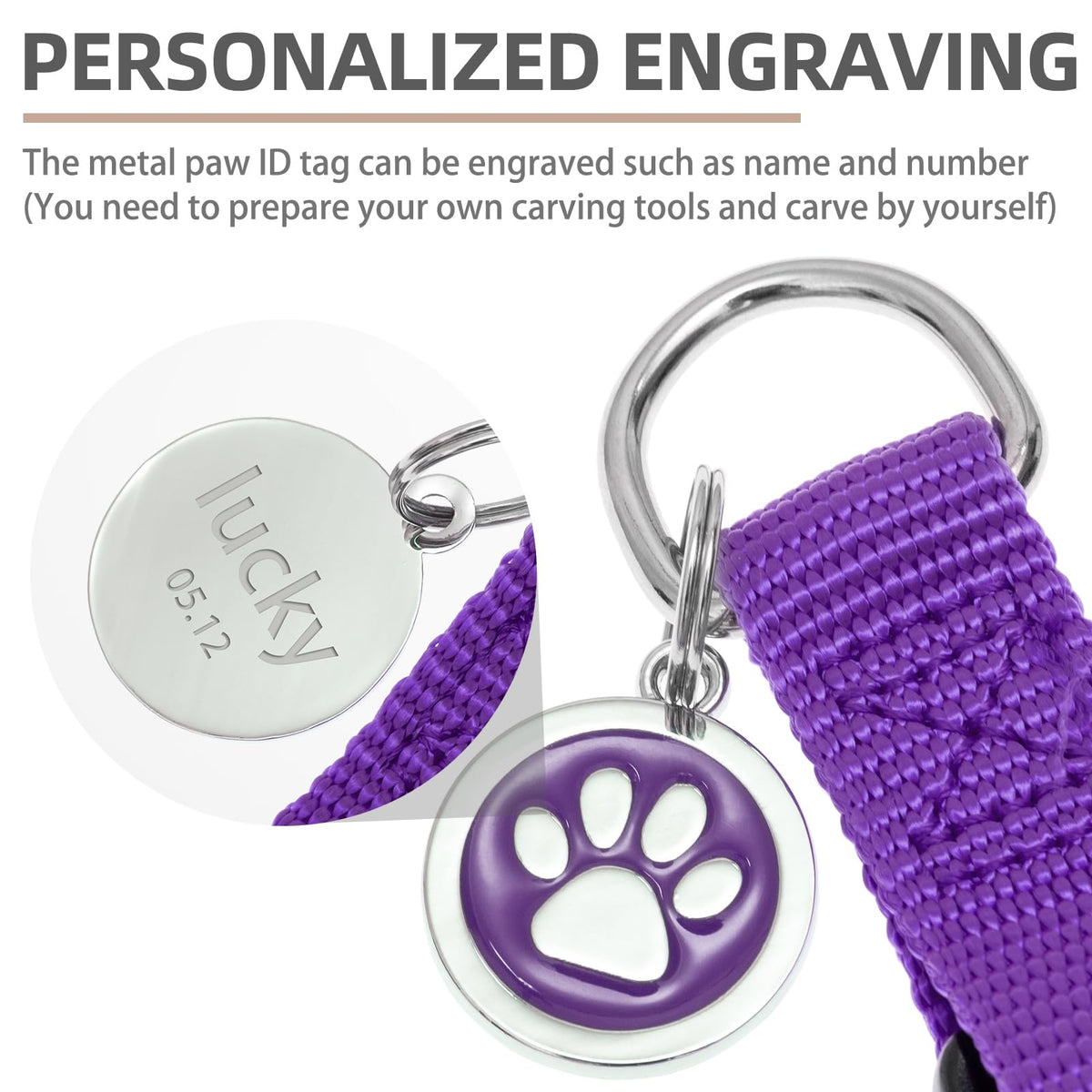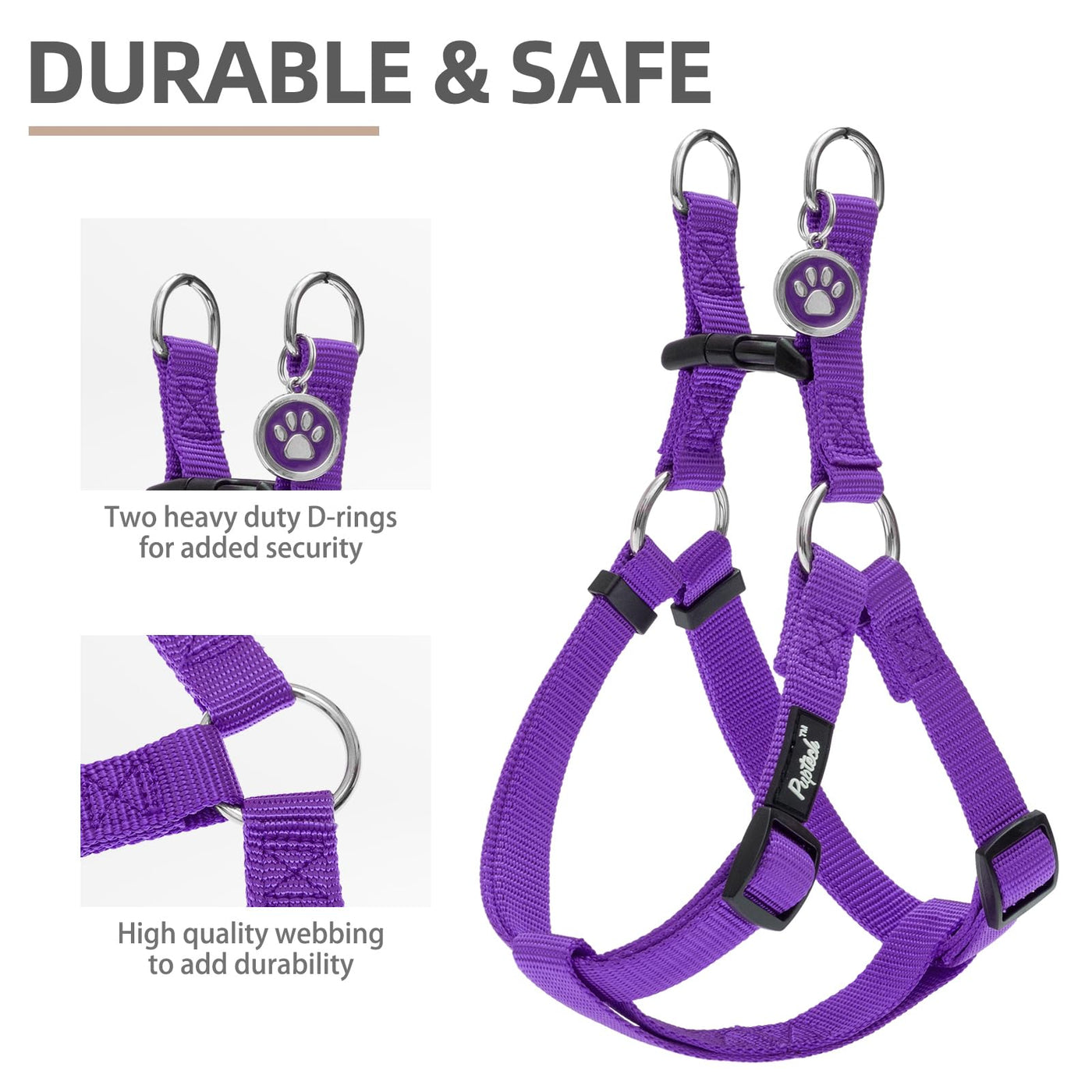 Pupteck No Pull Dog Harness Soft Adjustable Basic Nylon Step In Puppy Vest Outdoor Walking With Id Tag And A-Ir Tag Case, Purple