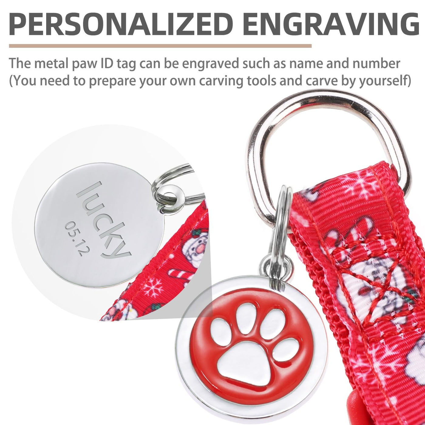 Q: Can I customize the ID tag on the PUPTECK No Pull Dog Harness?A: Yes, the harness comes with a metal ID tag featuring a cute paw pattern. You can engrave your dog's name or any other information on the back, providing a personalized touch while ensuring your dog is easy to identify.