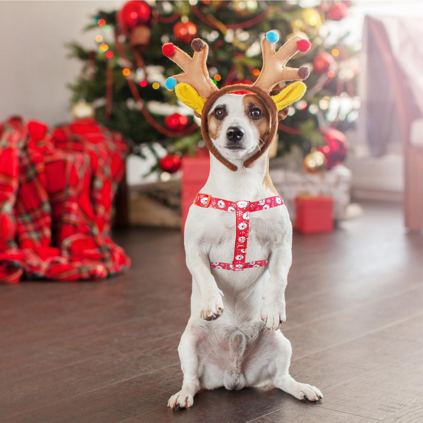 Pupteck No Pull Dog Harness Soft Adjustable Basic Nylon Step In Puppy Vest Outdoor Walking With Id Tag, Christmas, M