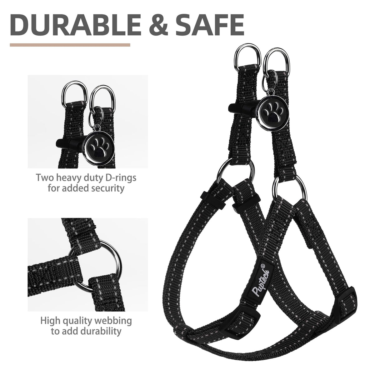 Pupteck No Pull Dog Harness Soft Adjustable Basic Nylon Step In Puppy Vest Outdoor Walking With Id Tag, Reflecive Black, S