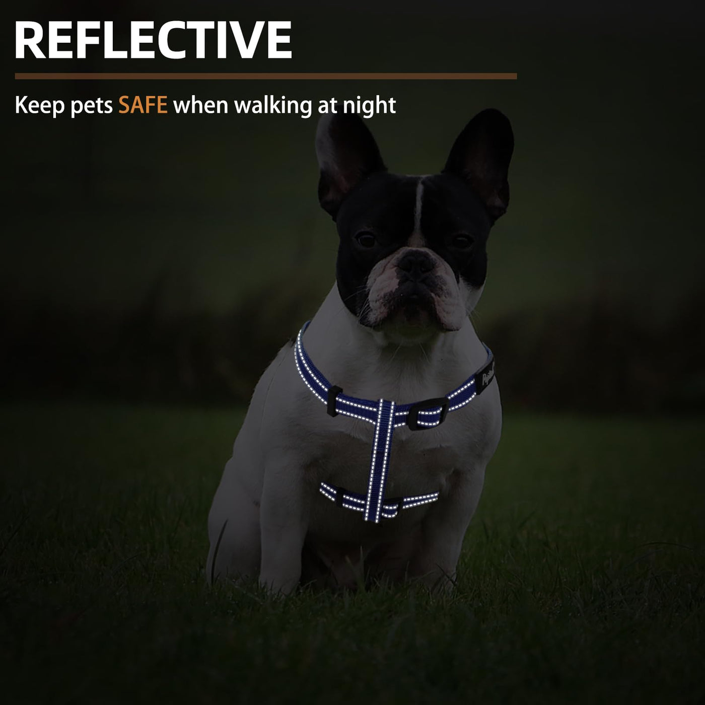 Pupteck No Pull Dog Harness Soft Adjustable Basic Nylon Step In Puppy Vest Outdoor Walking With Id Tag, Reflecive Navy Blue, S