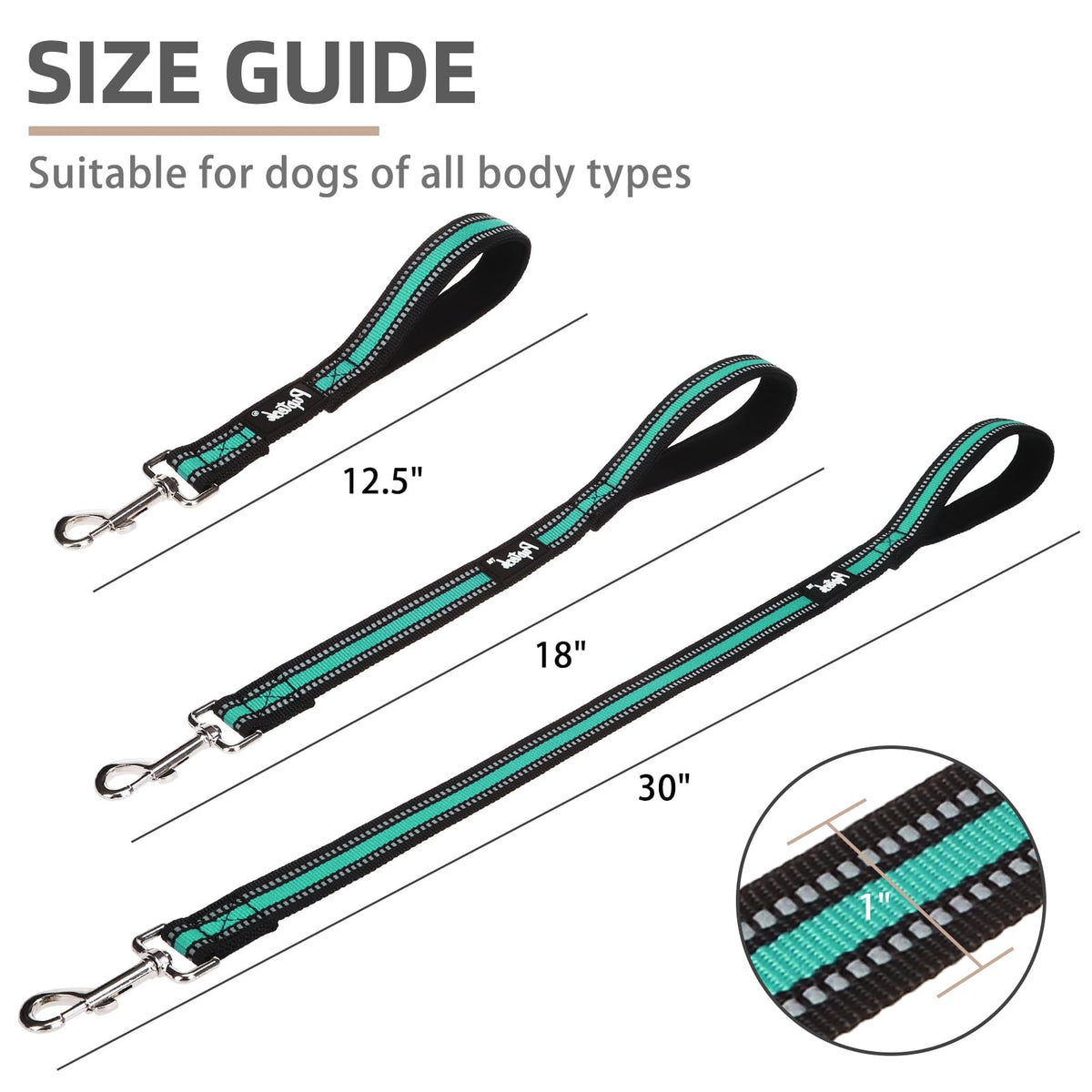 Pupteck Reflective Short Dog Leash - 3 Packs 2.5Ft/ 1.5Ft/ 1Ft Nylon Dog Leash With Strong Clip, And Soft Padded Handle, Durable Training Leash For Small Medium Large Dogs Cats Walking Outside, Green