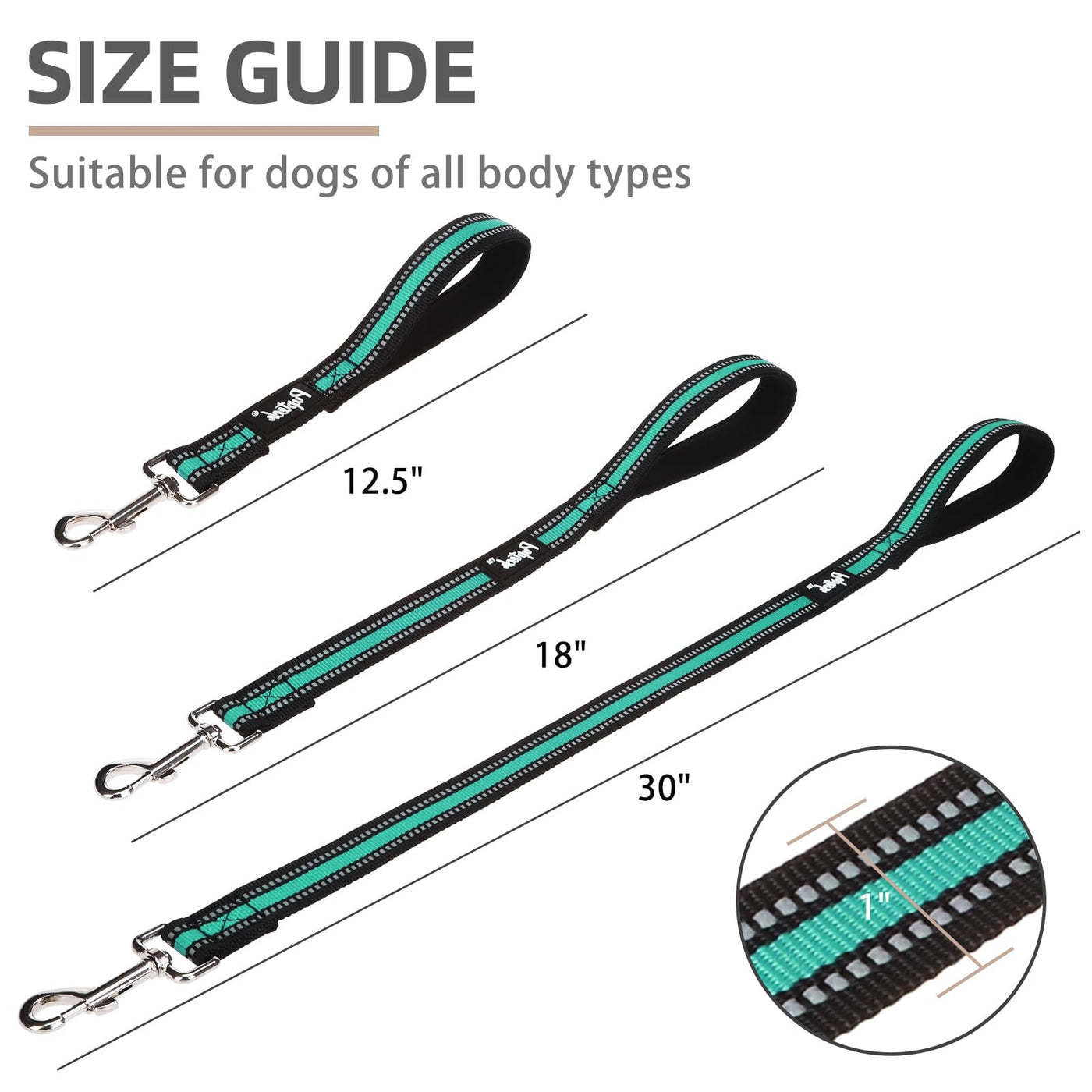 Pupteck Reflective Dog Leash Pack - 2.5Ft/ 1.5Ft/ 1Ft Nylon Leashes With Strong Clip, Soft Padded Handle, Durable Training Leash