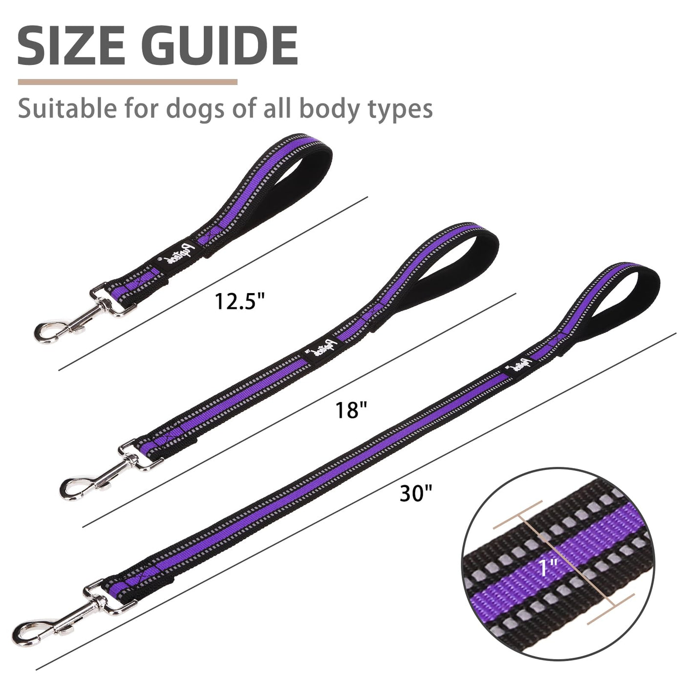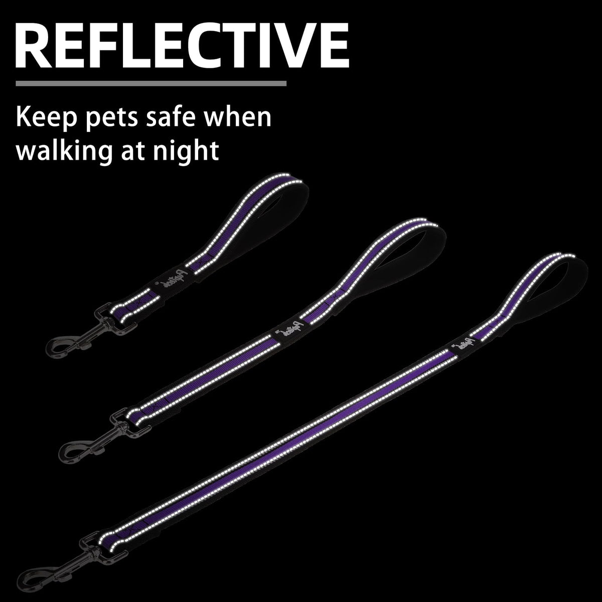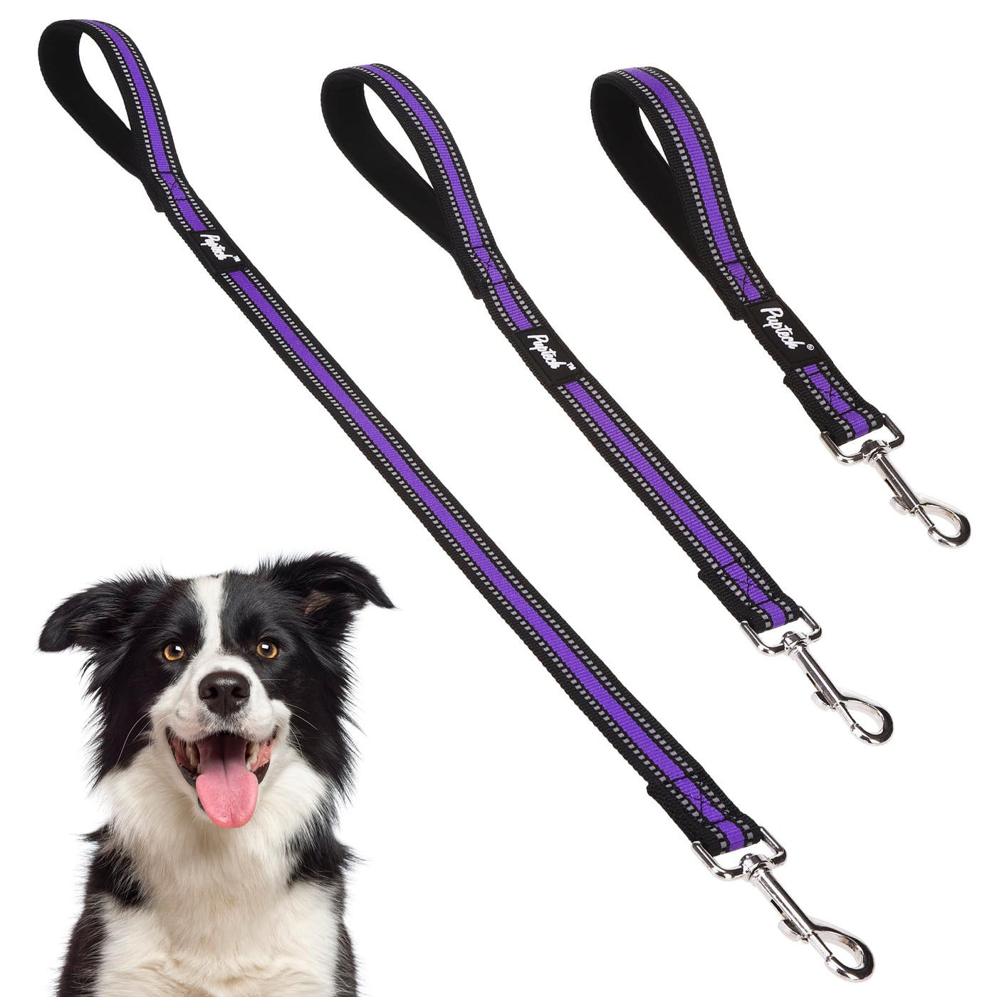 Pupteck Reflective Short Dog Leash - 3 Packs 2.5Ft/ 1.5Ft/ 1Ft Nylon Dog Leash With Strong Clip, And Soft Padded Handle, Durable Training Leash For Small Medium Large Dogs Cats Walking Outside, Purple
