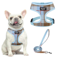 Pupteck Soft Mesh Dog Harness And Leash Set Pet Puppy Cat Comfort Padded Vest No Pull Harnesses, Blue&Brown, L