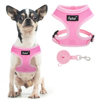 Pupteck Soft Mesh Dog Harness And Leash Set Pet Puppy Cat Comfort Padded Vest No Pull Harnesses, Solid Pink, Xs