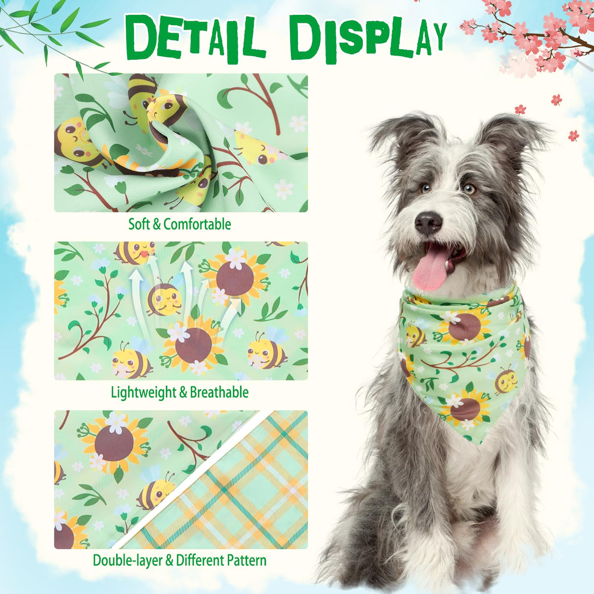 Pupteck Summer Dog Bandanas 4Pcs Outfit - Spring Soft Costume Pet Triangle Bibs Scarf, Pet Accessories Gifts For Small Medium La