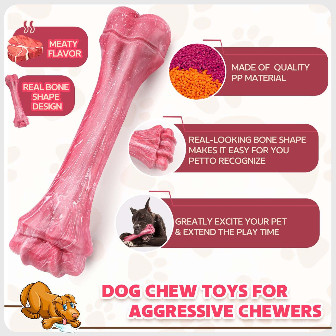 Puptily Dog Toys For Aggressive Chewers, Indestructible Dog Bones For Aggressive Chewers, Tough Chew Toy For Heavy Duty Dogs, Bi