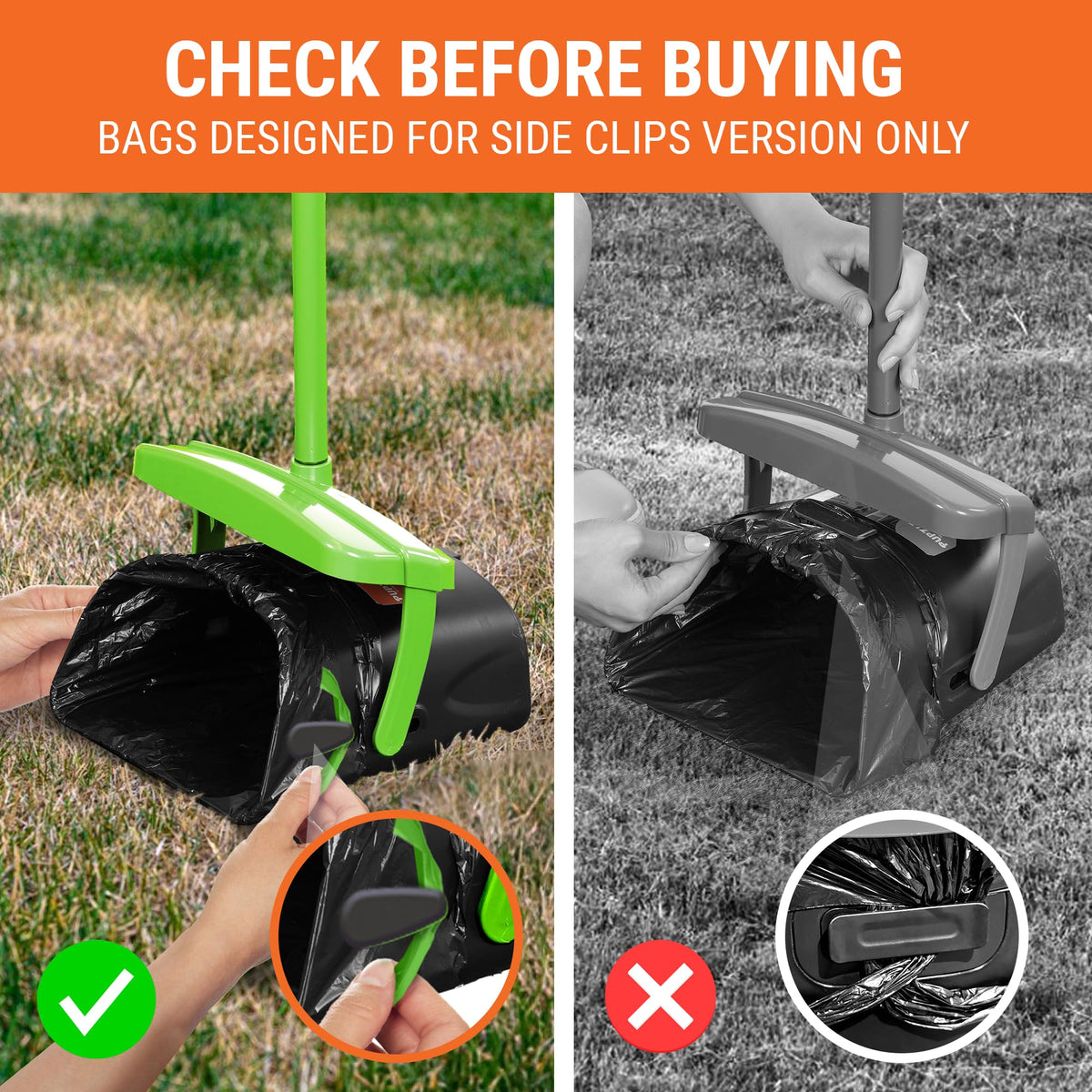 Upgrade your pet waste management with Pupzle Pooper Scooper Replacement Bags, designed exclusively for the UPGRADED Pupzle Pooper Scooper with side bag attachment clips. These innovative bags fit snugly onto the swivel bin without overhang, making scooping easier and more secure, giving you peace of mind during cleanup. Engineered for durability, these replacement bags are 3x thicker than standard poop bags, ensuring they won't tear, even if left with waste for a week, making cleanup on your schedule stress-free. The built-in drawstring closure adds convenience-detach the bag from the bin, pull the drawstring to seal, and simply tie and toss. No mess, no fuss! Designed for odor-free waste management, Pupzle bags provide effortless, hygienic cleanup, even during multiple trips, so you can maintain a clean yard without compromising on convenience. Pair these bags with the Pupzle Pooper Scooper for the ultimate pet cleanup solution, combining functionality and ease for pet owners who value efficiency