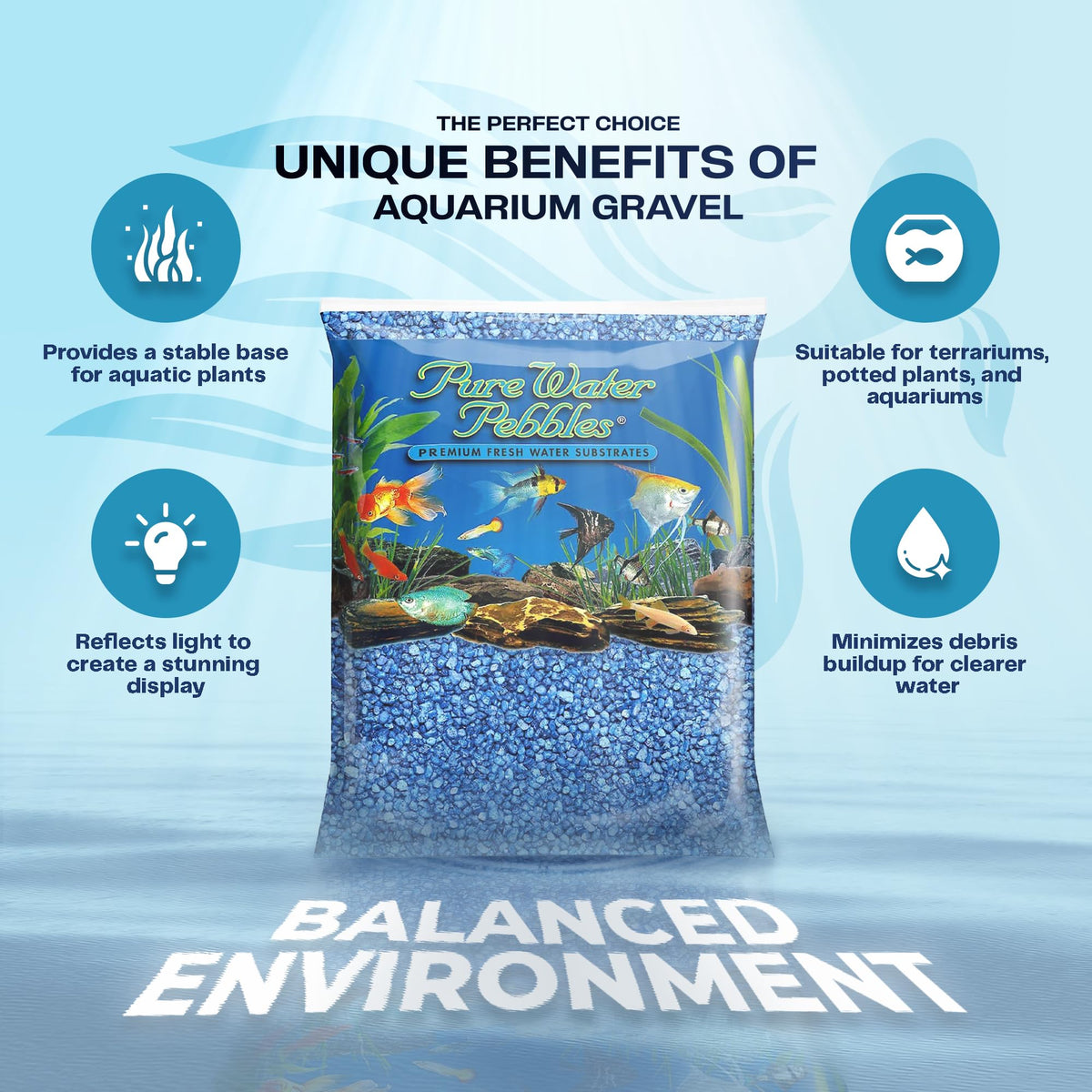Pure Water Pebbles Neon Blue Aquarium Gravel, 25 Lbs - Premium Fish Tank Gravel, Decorative Aquarium Rocks, Fish Tank Accessories, And Pebbles For Aquariums