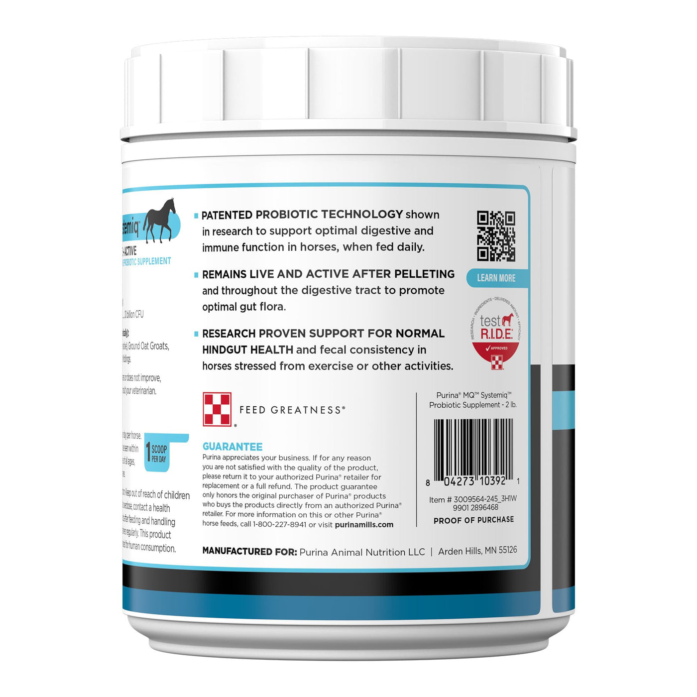For over a decade, Purina has been studying the equine microbiome to help horse owners unlock new insights into their horses health. We looked beyond the usual expectations of what a probiotic can do. Our unique and patented probiotic technology in Systemiq supplement has a systemic effect in your horse, helping them to overcome challenges such as exercise or occasional gastrointestinal stress. Its time to know your probiotic is working as hard as you do.
