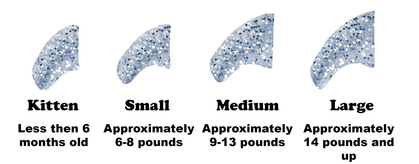 Kitten Size: (Less than 6 months old) These will fit most kittens by the time they reach the age of 12-16 weeks.