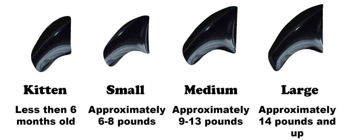 Q: What size nail caps should I get for my cat?A: The Purrdy Paws nail caps come in different sizes: Kitten (less than 6 months), Small (6-8 pounds), Medium (9-13 pounds), and Large (14 pounds and up). Most adult average-sized cats will fit into the Medium size.