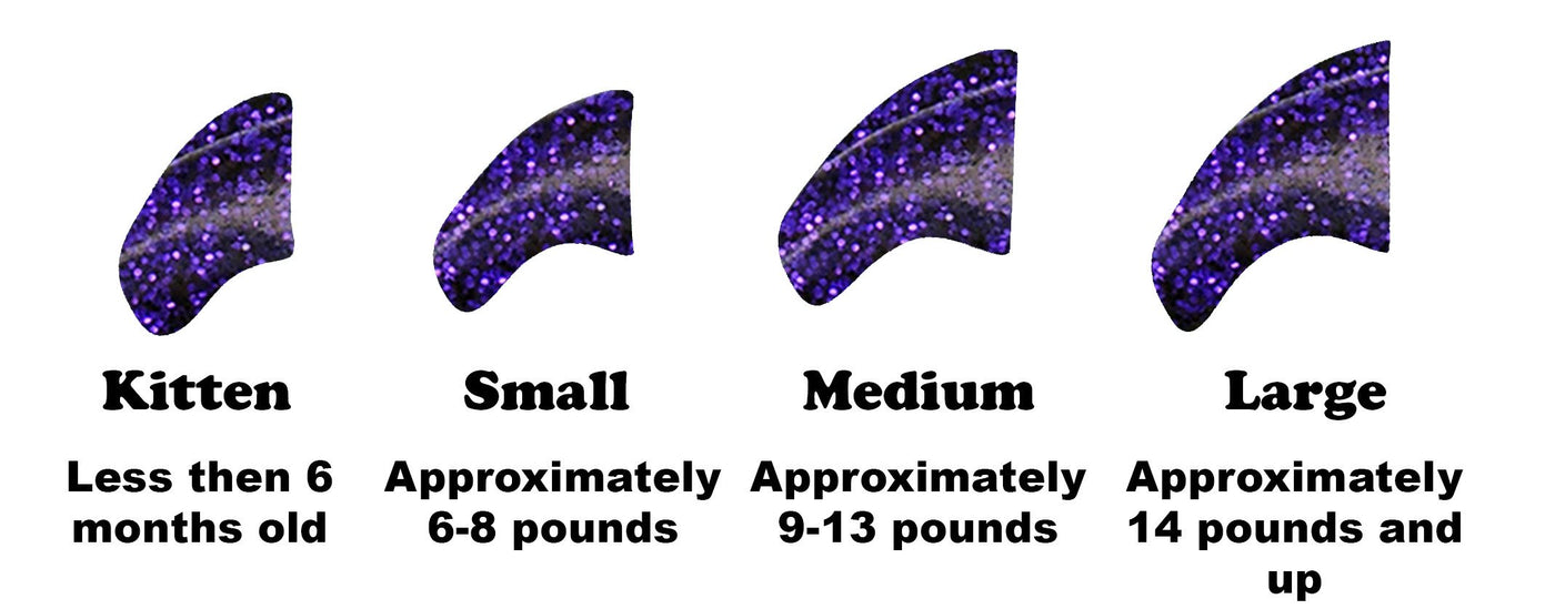 Q: What size nail caps should I choose for my cat?A: Purrdy Paws nail caps come in different sizes. For medium size, they fit most adult cats weighing approximately 9-13 pounds. Make sure to check the size guidelines: Kittens under 6 months, small (6-8 pounds), medium (9-13 pounds), and large (14 pounds and up).