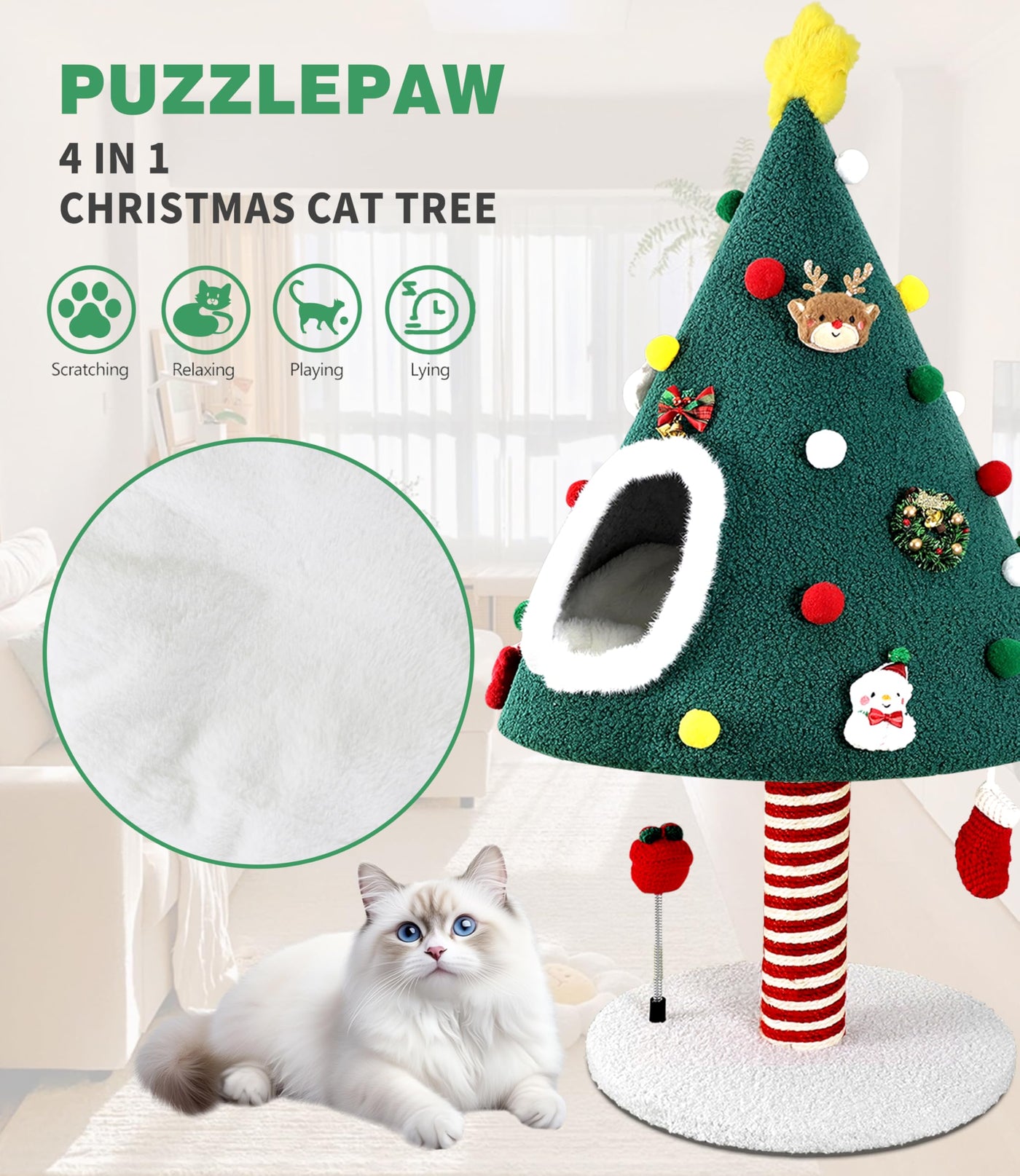 Puzzlepaw Chirstmas Cat Tree Tower With Scratching Post Scratcher For Indoor Cats,Cat Chirstmas Tree,Cat Activity Center Play Ca