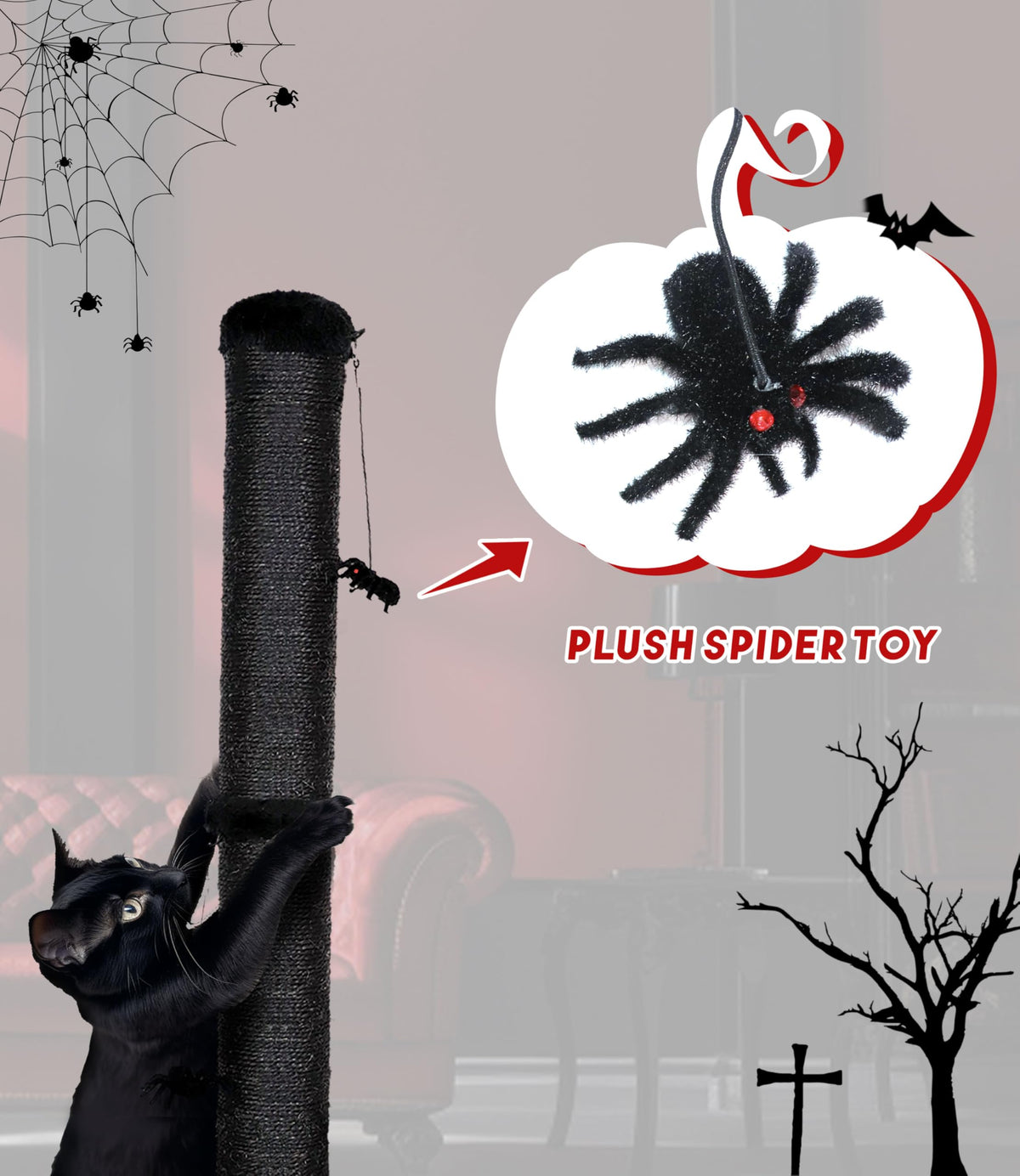 Puzzlepaw Gothic Cat Scratching Post With Spider Dangling Toys For Indoor Cats, Halloween Spooky Cat Scratcher,Activity Cat Play