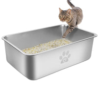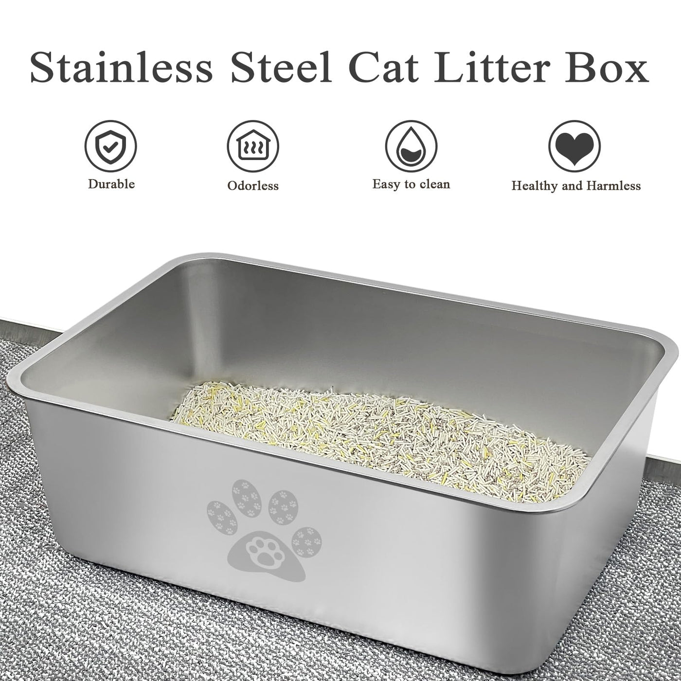 Pwtaa Stainless Steel Cat Litter Box High Side Cats Toilet Metal Kitten Litter Pan, Pet Cleaning Tool For Big And Small Cats, Ra