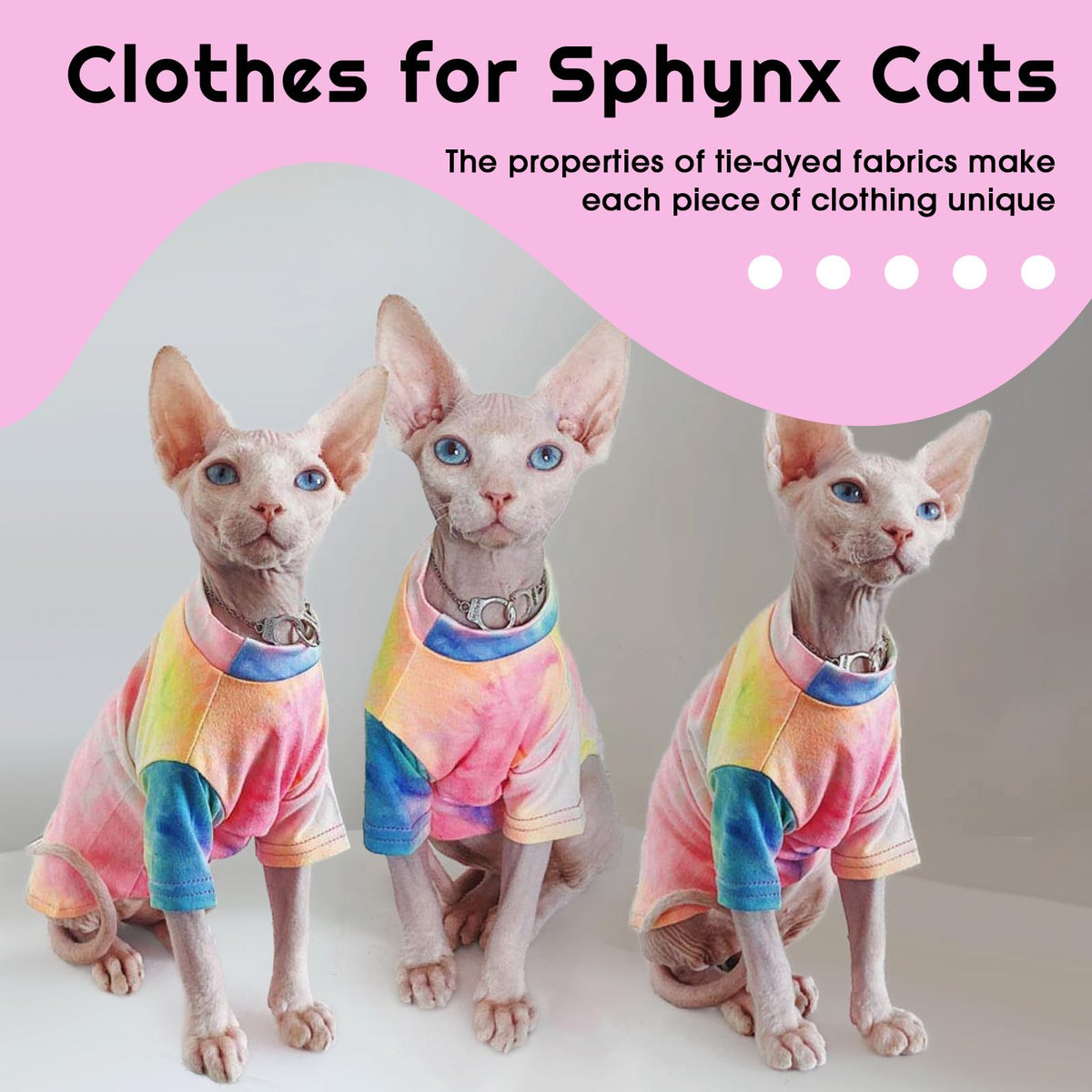 Qbleev Sphynx Cat Clothes, Hairless Cats Rainbow Rendering T-Shirt For Spring Summer Autumn, Breathable Cat Wear Clothes Vest Sh