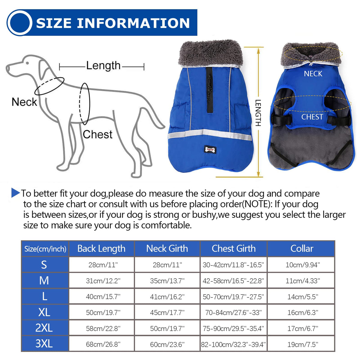 - Q: What sizes are available for the QBLEEV Warm Dog Coat? A: The QBLEEV Warm Dog Coat is available in six sizes: S, M, L, XL, XXL, and XXXL, ensuring a fit for small, medium, and large dogs. It’s important to refer to the sizing chart for accurate measurements to choose the right size for your pet.